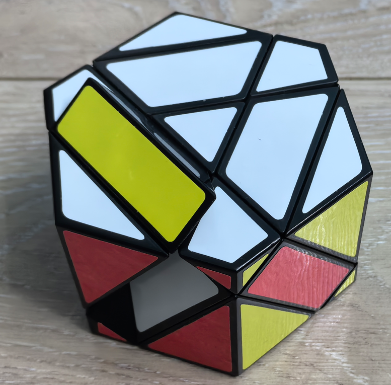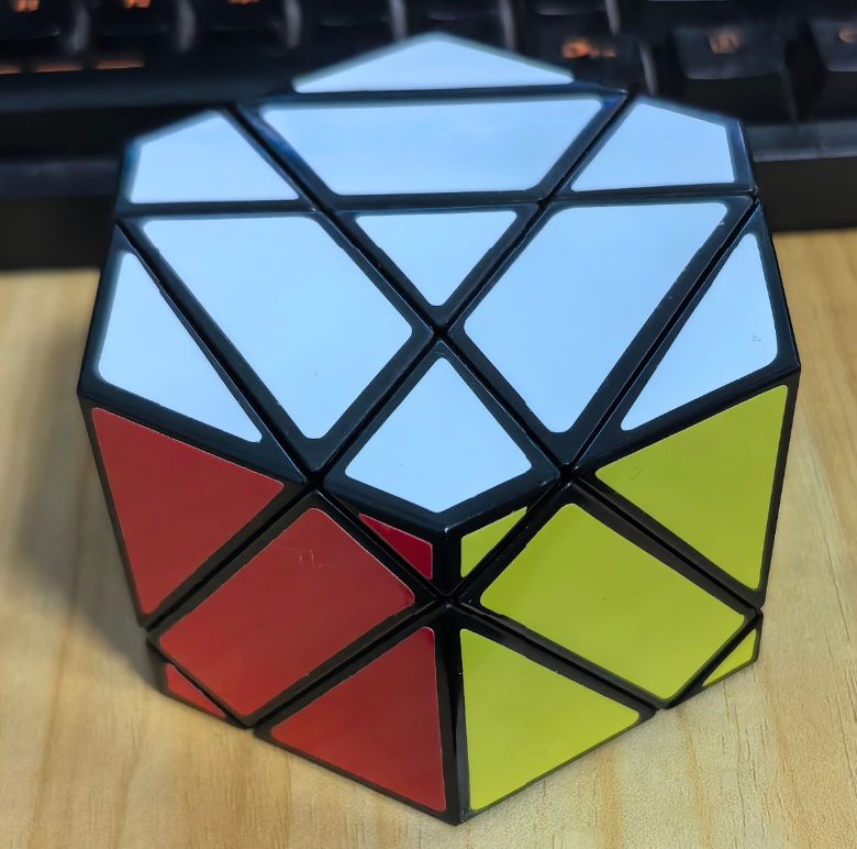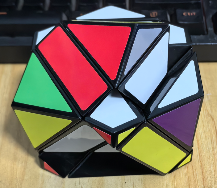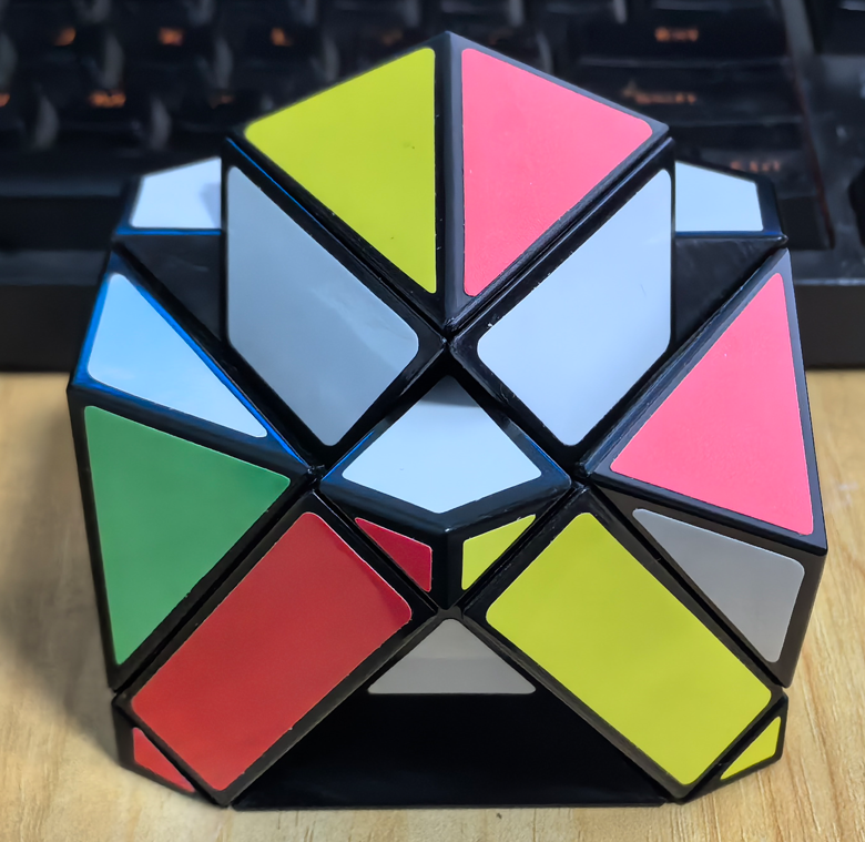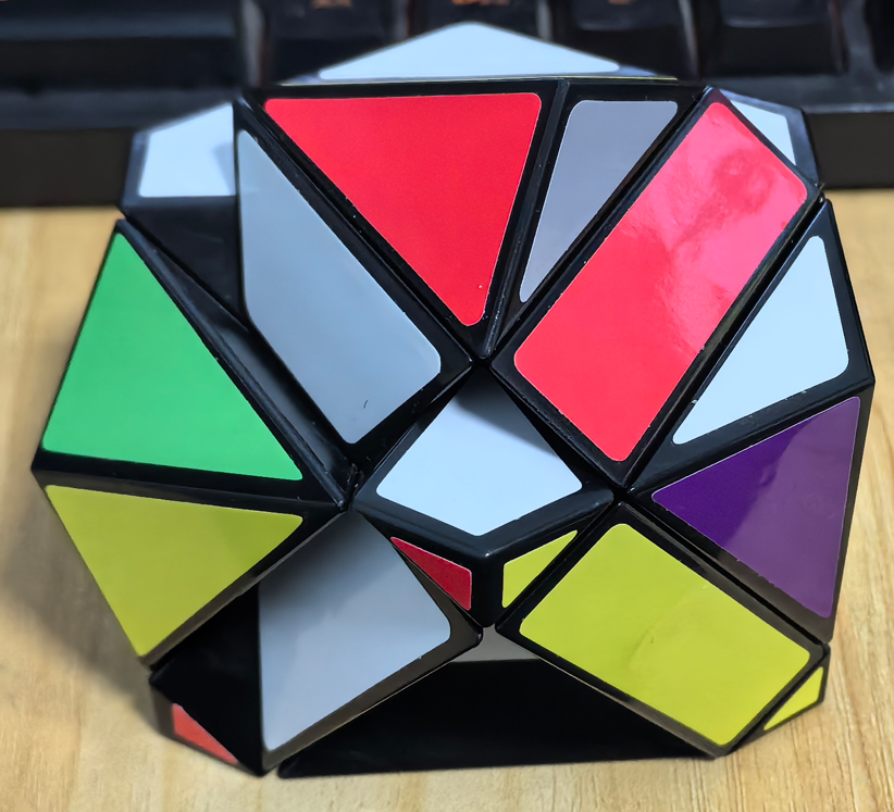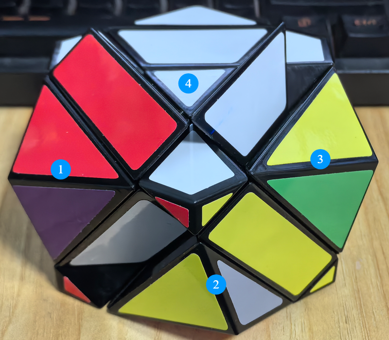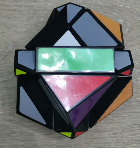 角块分为1+1+6,即1个顶面的三角形角块,1个底面的三角形角块,6个侧面的各不相同的角块。