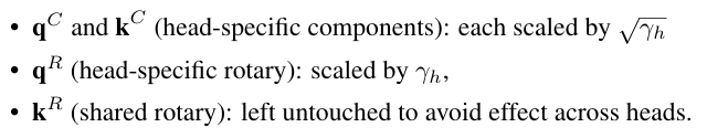 缩小权重: 直接修改 Query 的投影权重 (WqW_qWq) 和 Key 的投影权重 (WkW_kWk) 。Wq←Wq⋅γW_q \leftarrow W_q \cdot \sqrt{\gamma}Wq←Wq⋅γ Wk←Wk⋅γW_k \leftarrow W_k \cdot \sqrt{\gamma}Wk←Wk⋅γ