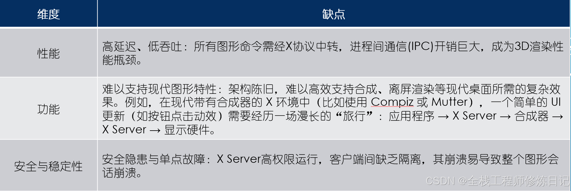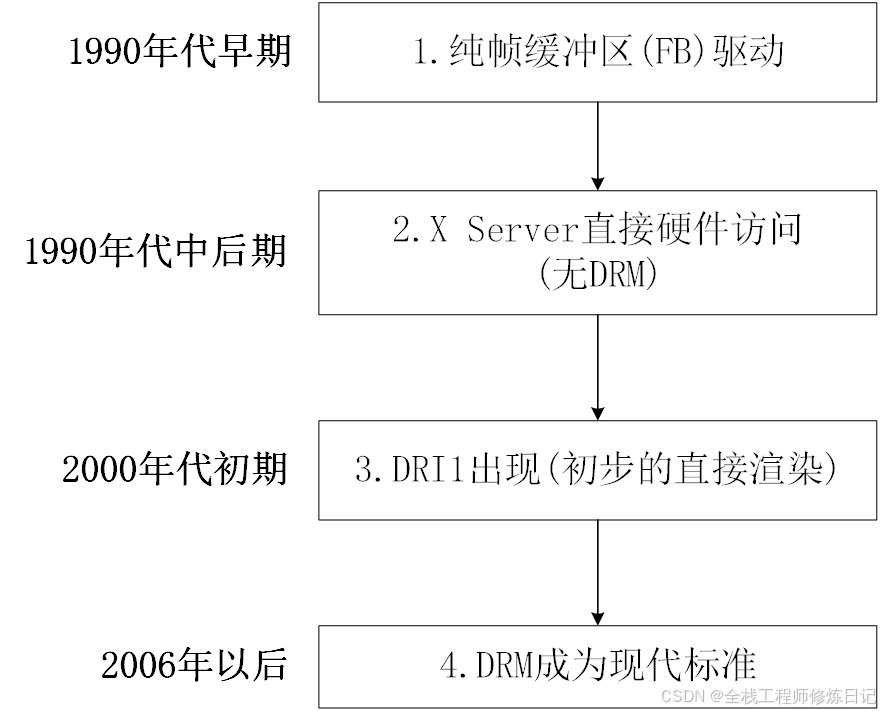 Linux显示架构大致经历了以下几个时期。这一演进历程的主要推动力在于: