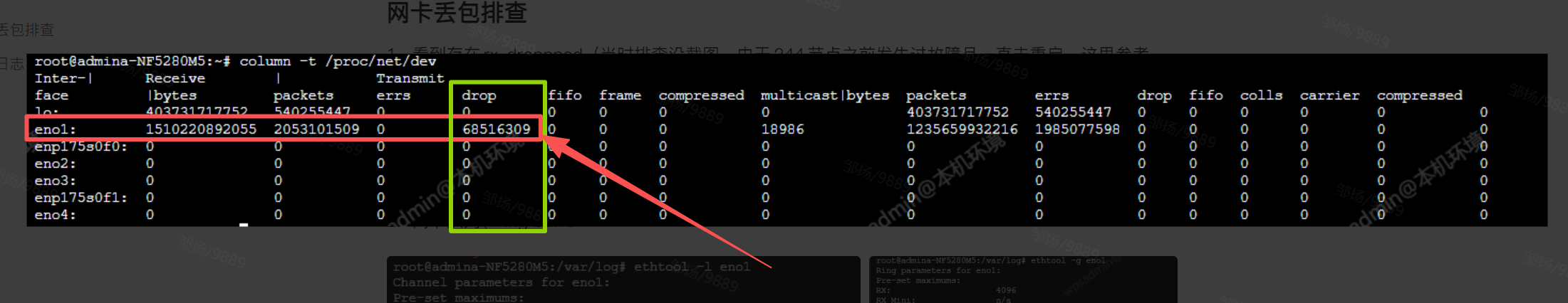 关键依据:/proc/net/dev 文件的接收丢包统计