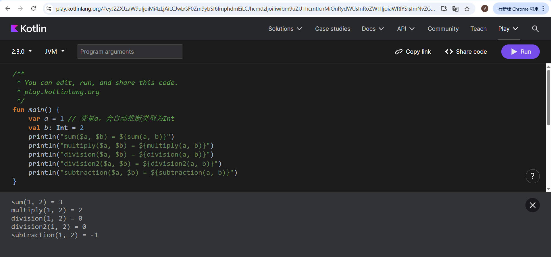看下kotlin变量和函数怎么定义的,运行下kotlin代码试试: