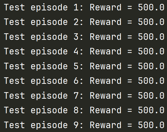 if reward_sums.mean() > 480: # 算平均分+早停