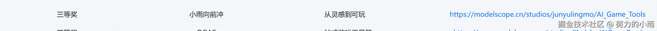 证明了"把 AI 当作产品能力而非黑盒"的思路是可行的:通过规范把"想法 → 文档 → 代码 → 运行"链路连通,降低了入门门槛,也提升了产出效率。该项目参加了几个比赛并获奖一个是文章征文,另一个是实战比赛。