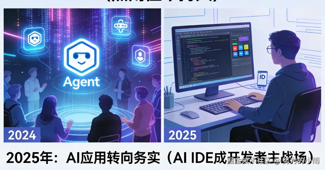 2024 年大家口中的"Agent 元年"对很多技术人来说热闹但不持久。各种智能体社区(像 Coze、元器、千帆、文心这些)在 2024 年有一段时间非常活跃,但到 2025 年你会发现,热闹退去了,讨论变得更务实:不是去争谁的 Agent 更"聪明",而是看谁能把 AI 更好地嵌入到每天写代码、交付产品的流程里。 对我个人而言,真正发生"质变"的,是 AI IDE 的兴起。今年国内几家大厂都推出了自家的 AI IDE(像 Trae、CodeBuddy、Qoder 等),它们把 AI 从"边缘插件"拉到了开发者主战场,这一点比什么"谁的 Agent 更聪明"要重要得多。