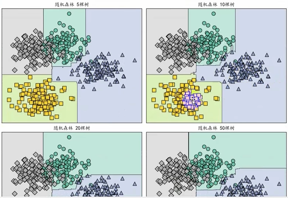 **注意,**随机森林在能选的所有特征重,每一次训练随机选部分特征作为这次训练的特征集