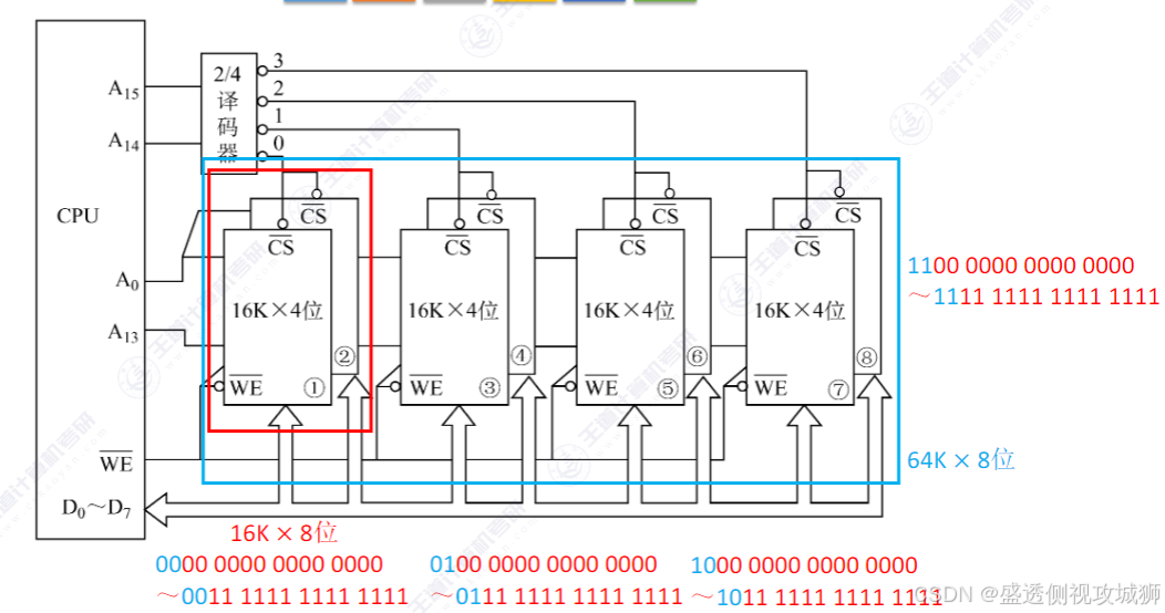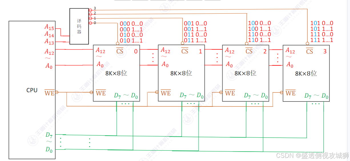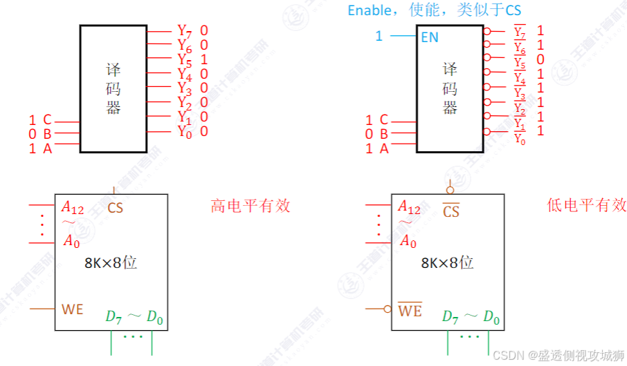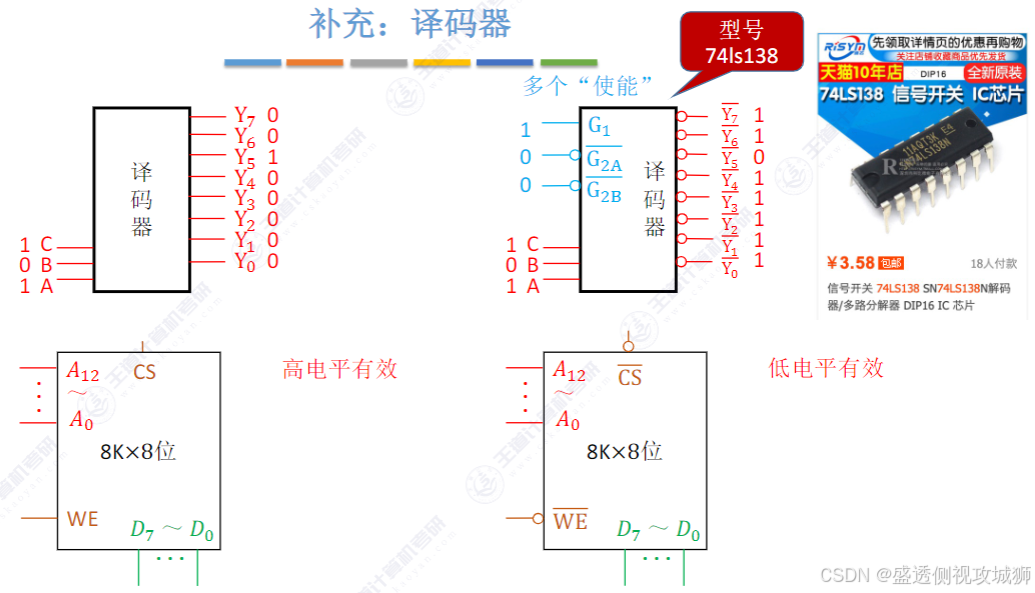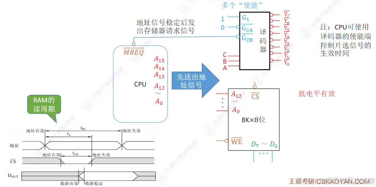 - 注:CPU可使用译码器的使能端控制片选信号的生效时间
