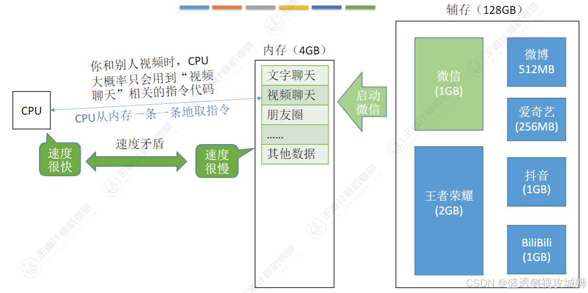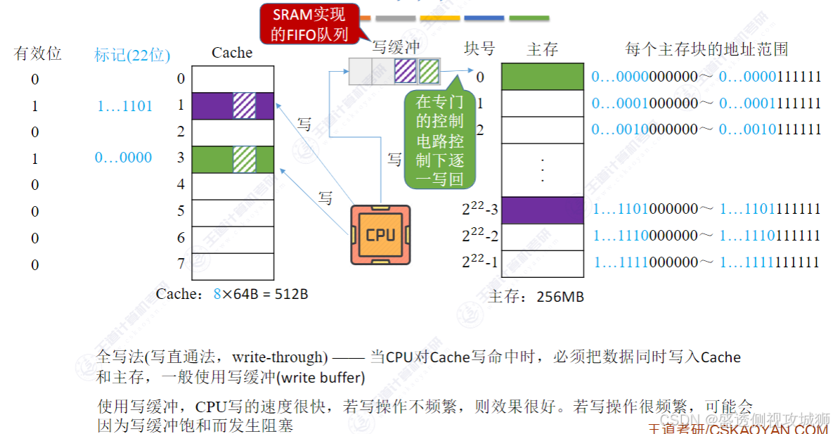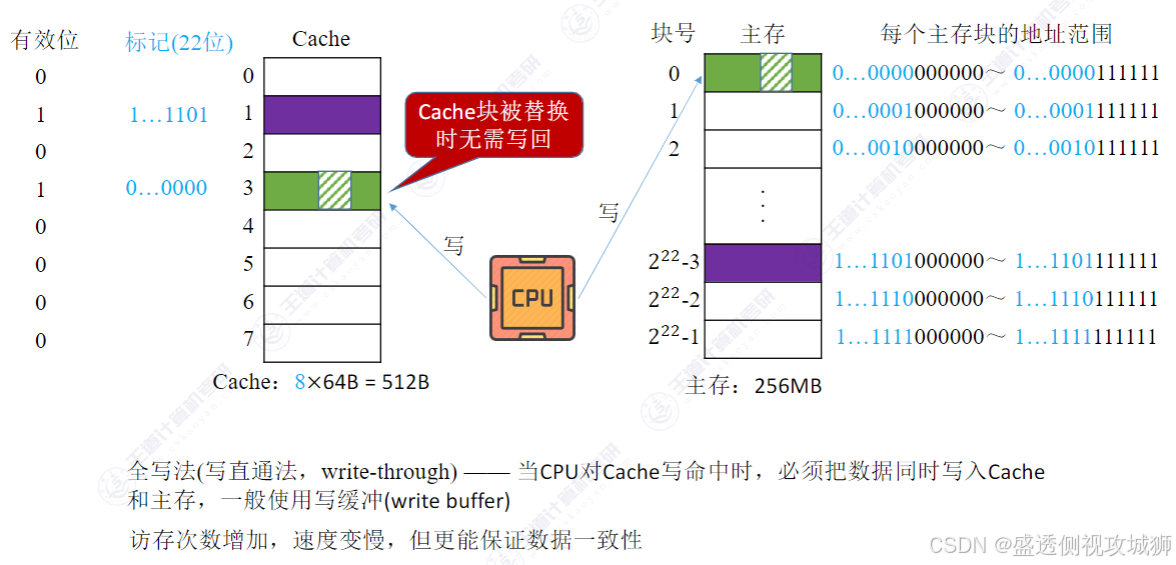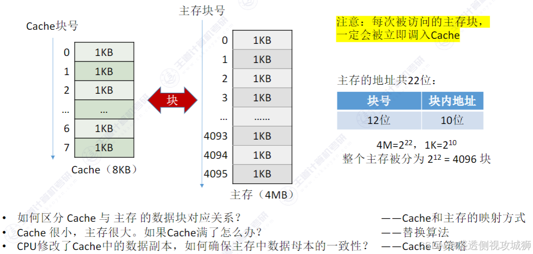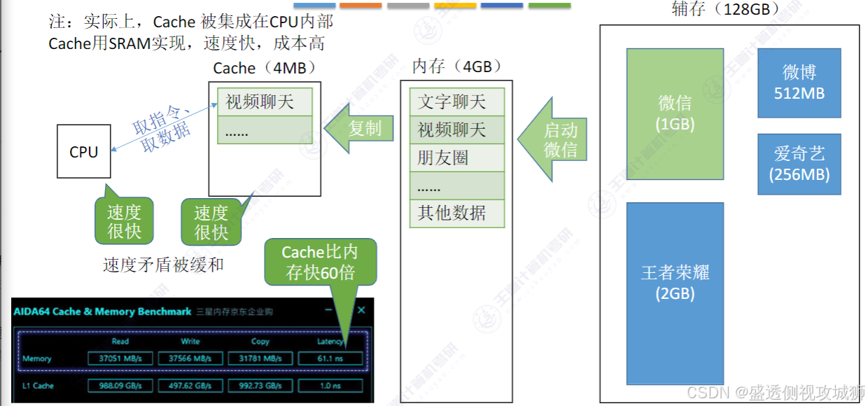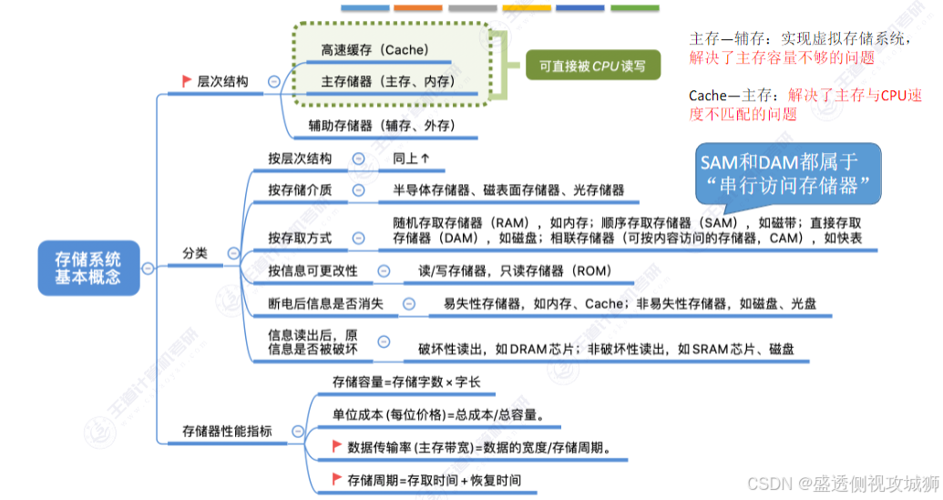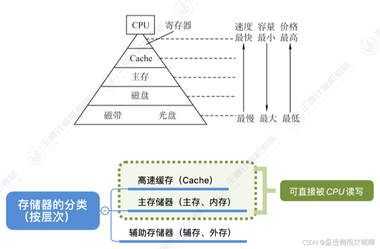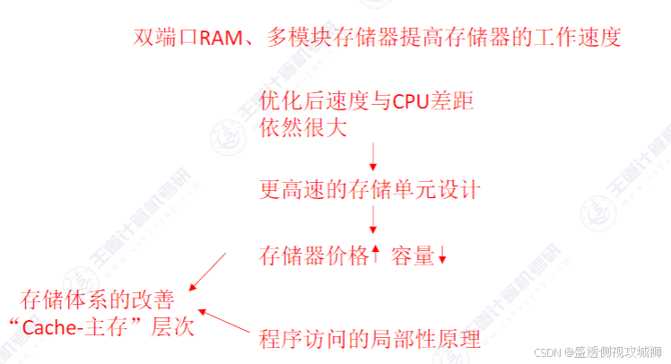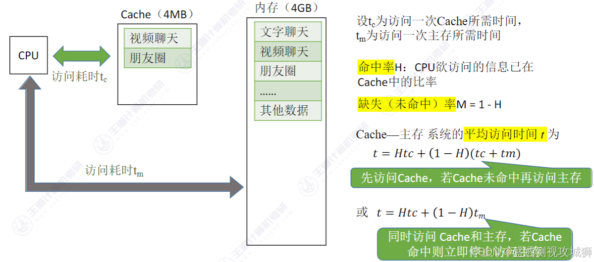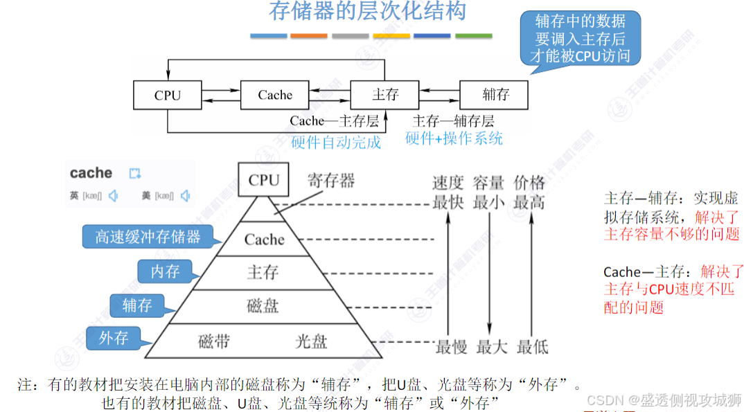 Cache-主存层次在存储系统中主要对CPU访存起加速作用,即从整体运行的效果分析,CPU访存速度加快,接近于 Cache的速度,而寻址空间和位价却接近于主存。