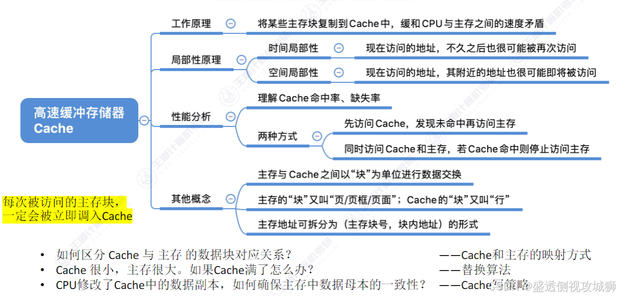 - 核心部分深入讲解了高速缓存(Cache)的工作原理、地址映射、替换算法和写策略,以缓解CPU与主存间的速度矛盾。