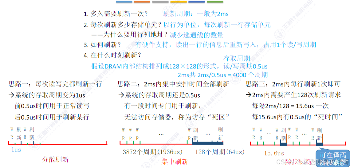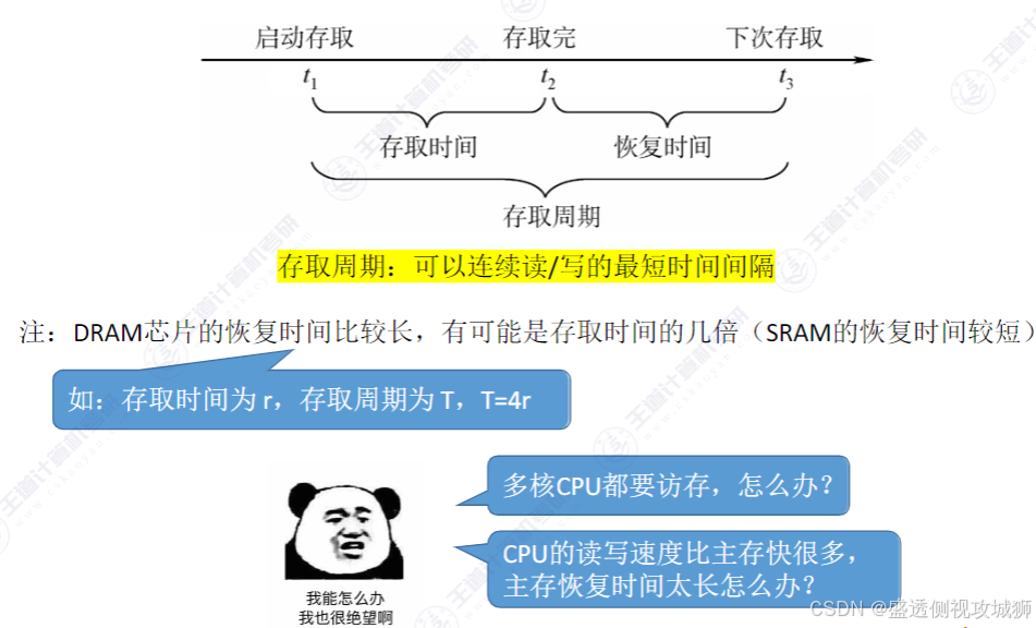 - 而存取周期不仅包含操作时间,而且包含操作后线路的恢复时间,即存取周期=存取时间+恢复时间。(这是不是也可以解释,为什么IC前端,时序分析中有建立时间和保持时间吧)