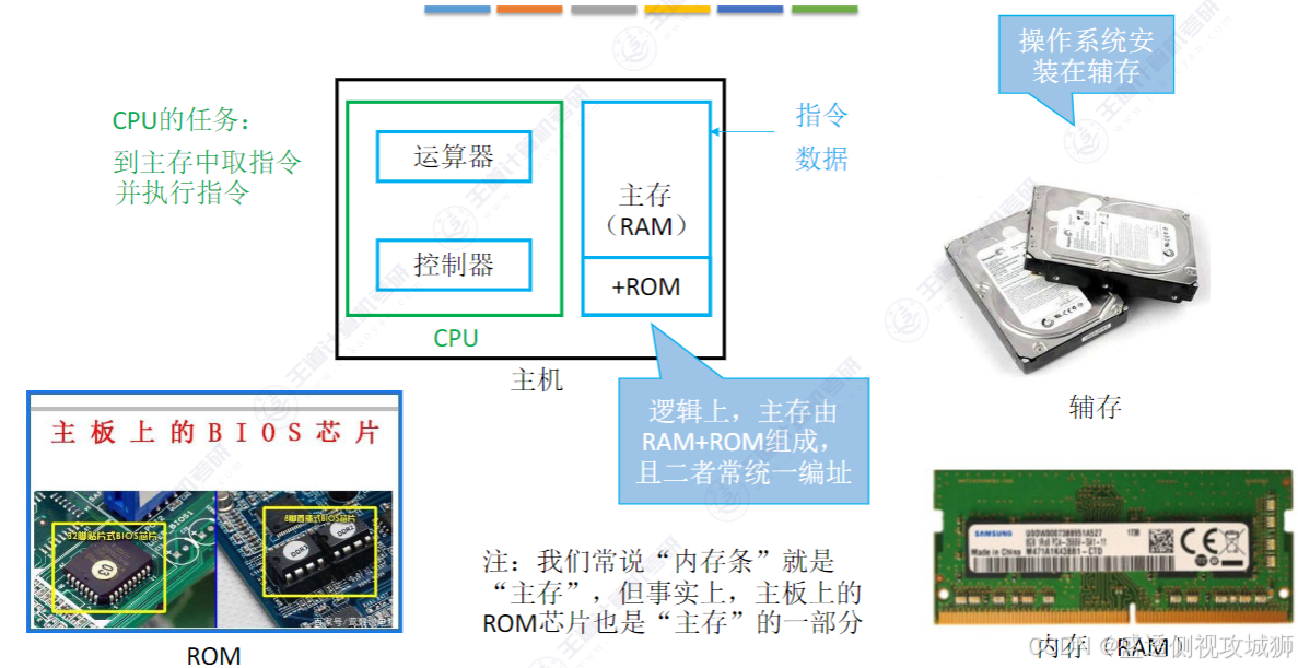 - 存取周期和存取时间的主要区别是:存取时间仅为完成一次操作的时间;