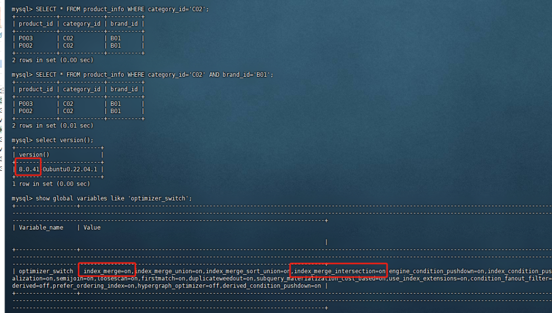 SELECT * FROM product_info WHERE category_id='C02' AND brand_id='B01'这个查询,优化器可能只选择了idx_category_id或idx_brand_id其中一个索引,从而无法有效地结合两个条件进行查询。