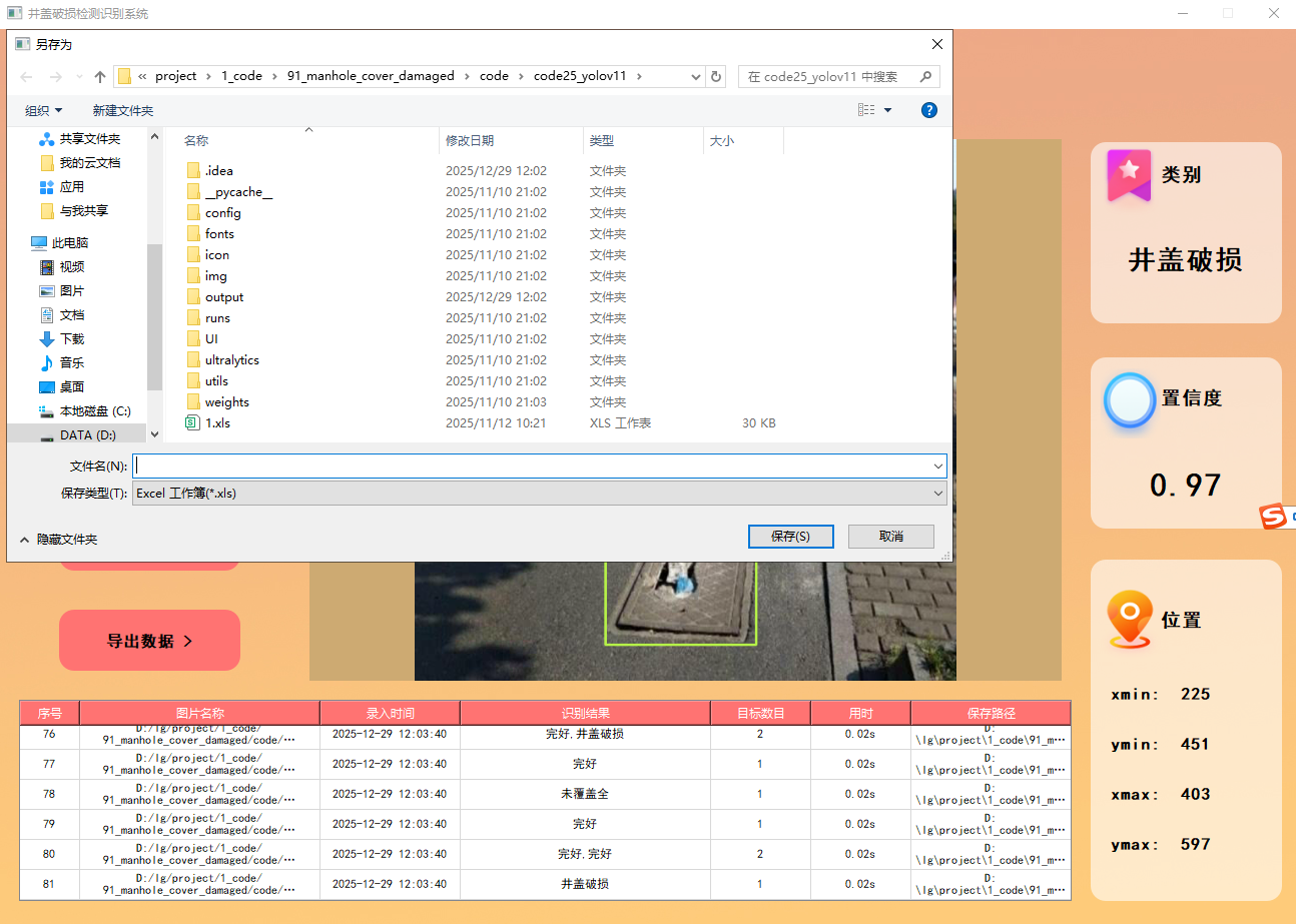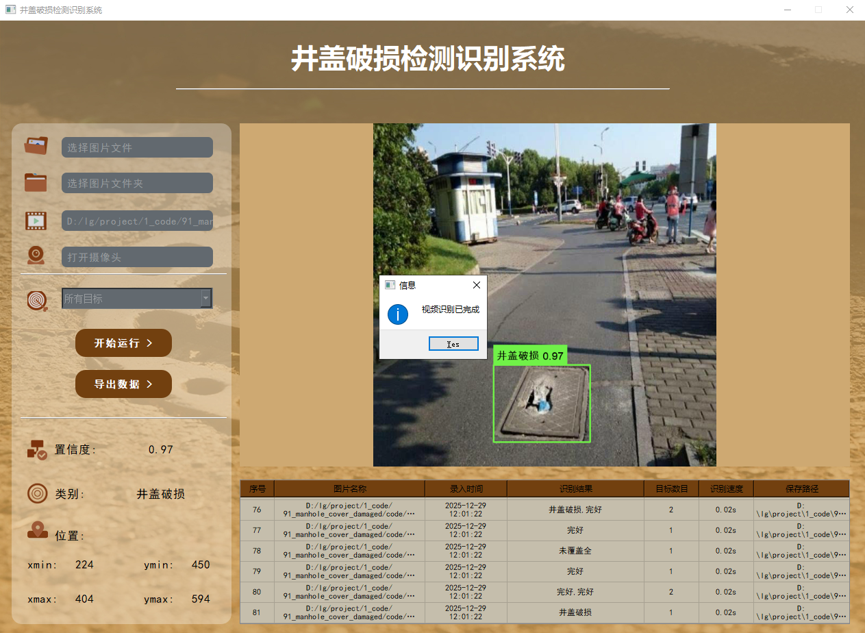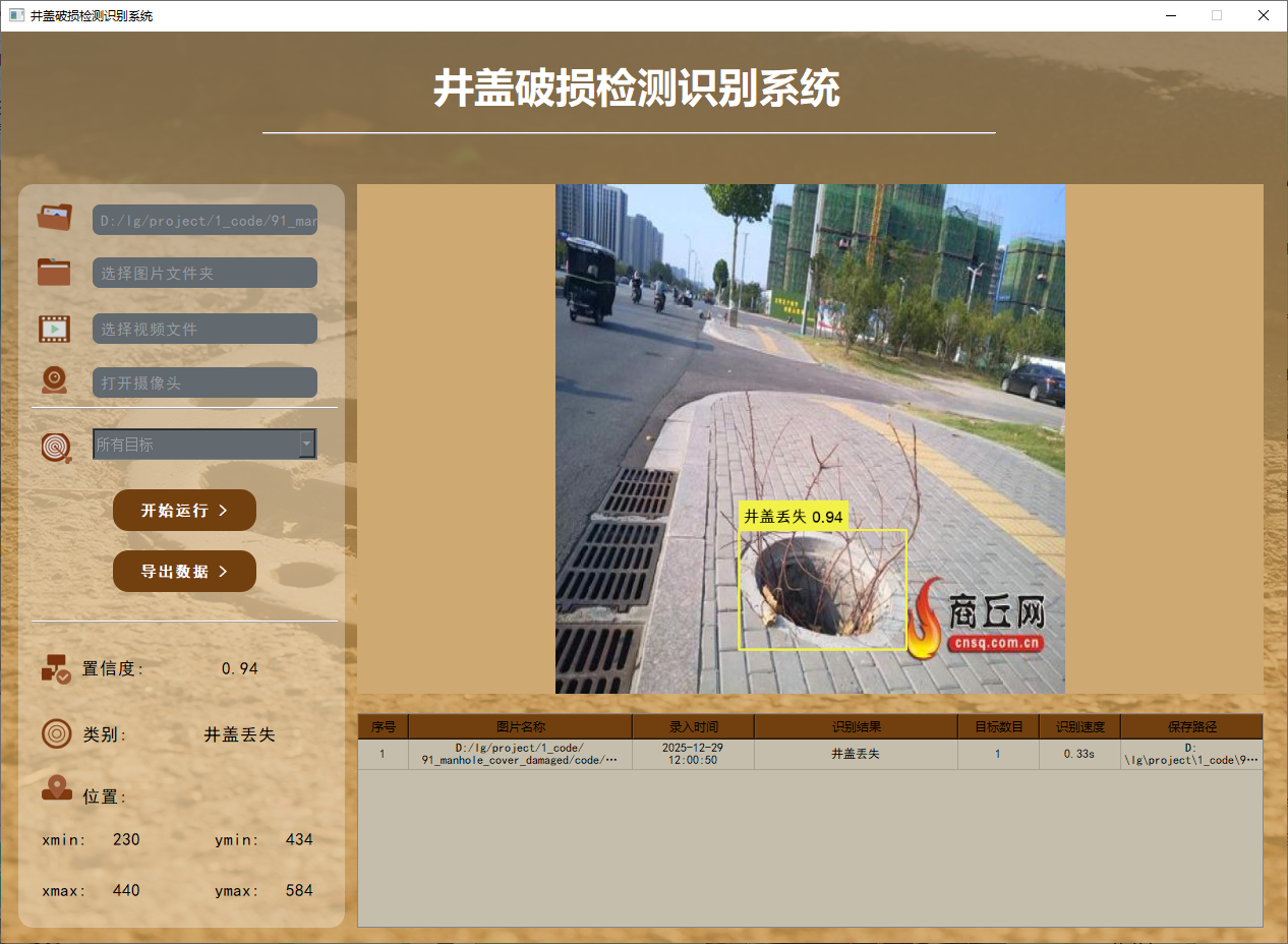 91-基于深度学习的井盖破损检测识别系统-yolo11-彩色版界面