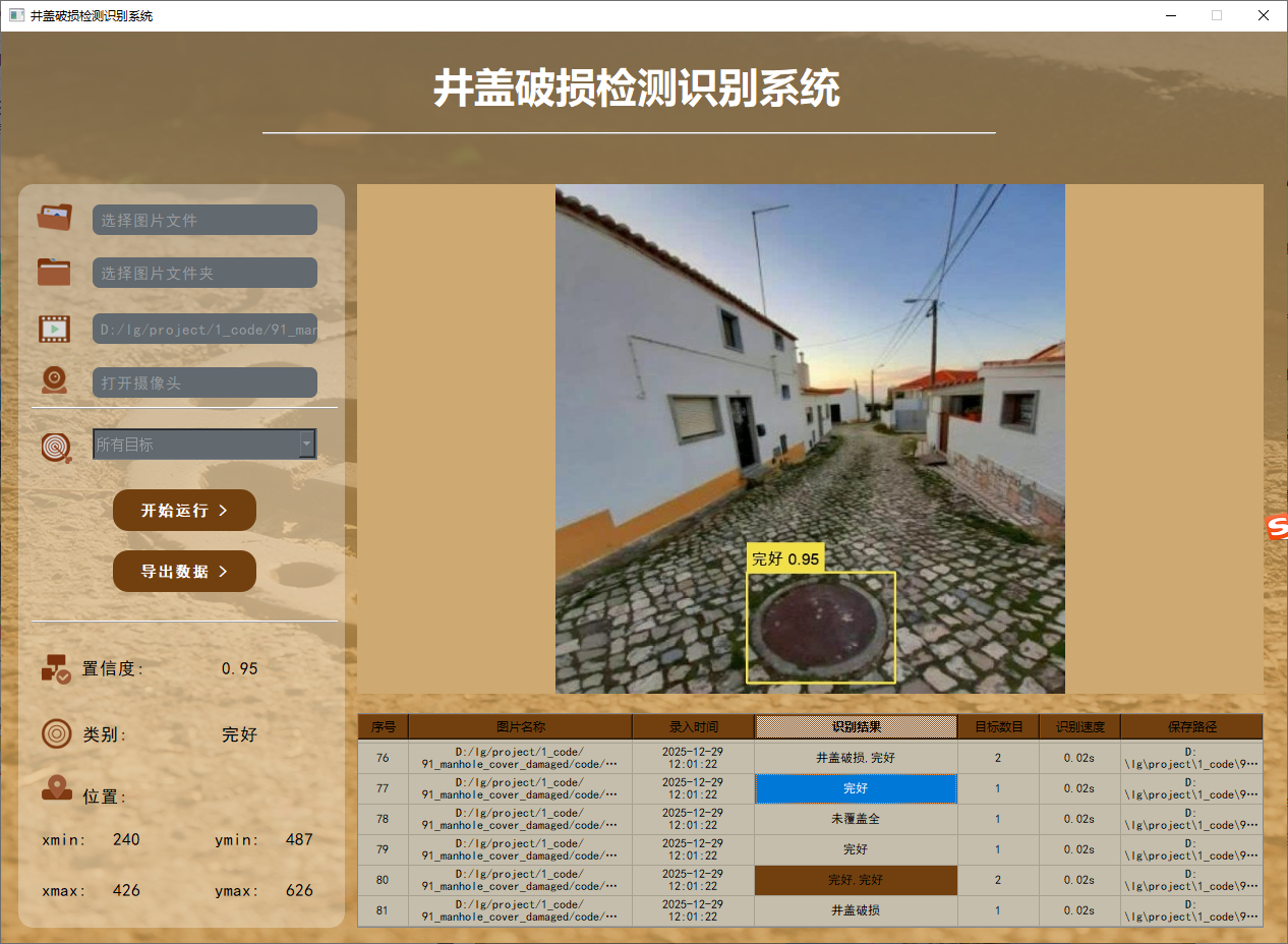91-基于深度学习的井盖破损检测识别系统-yolov8/yolov5-经典版界面