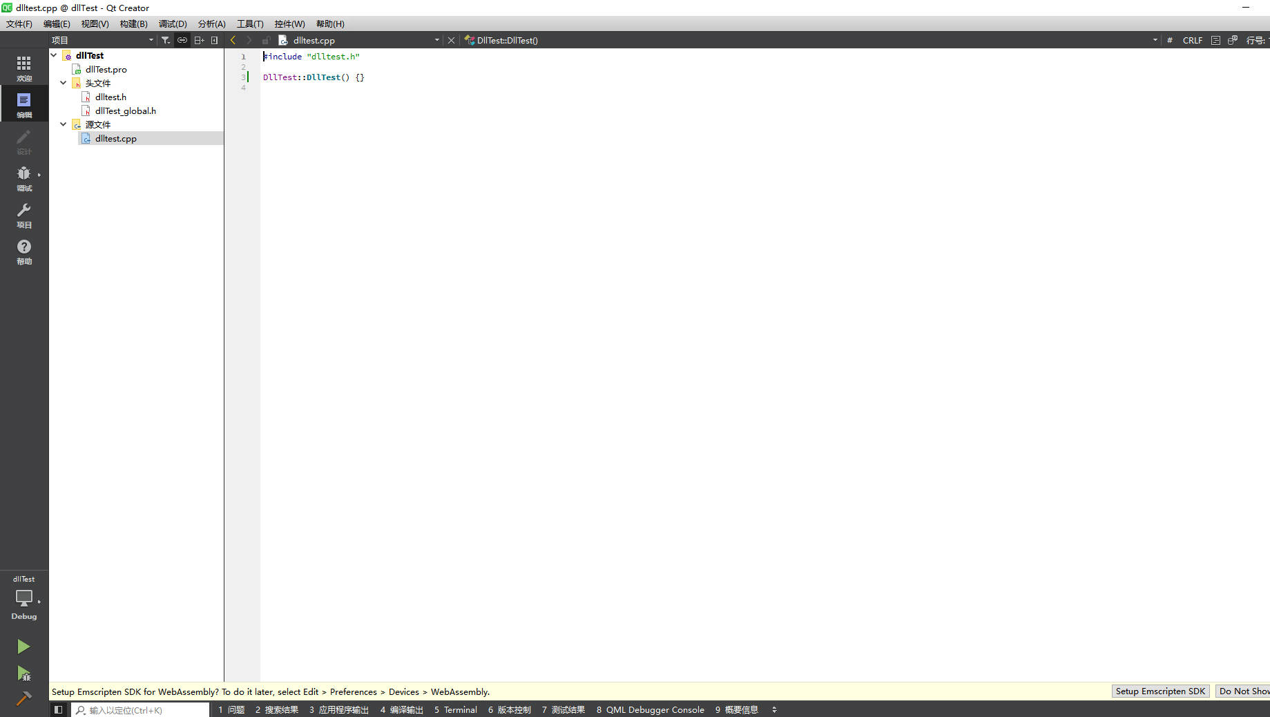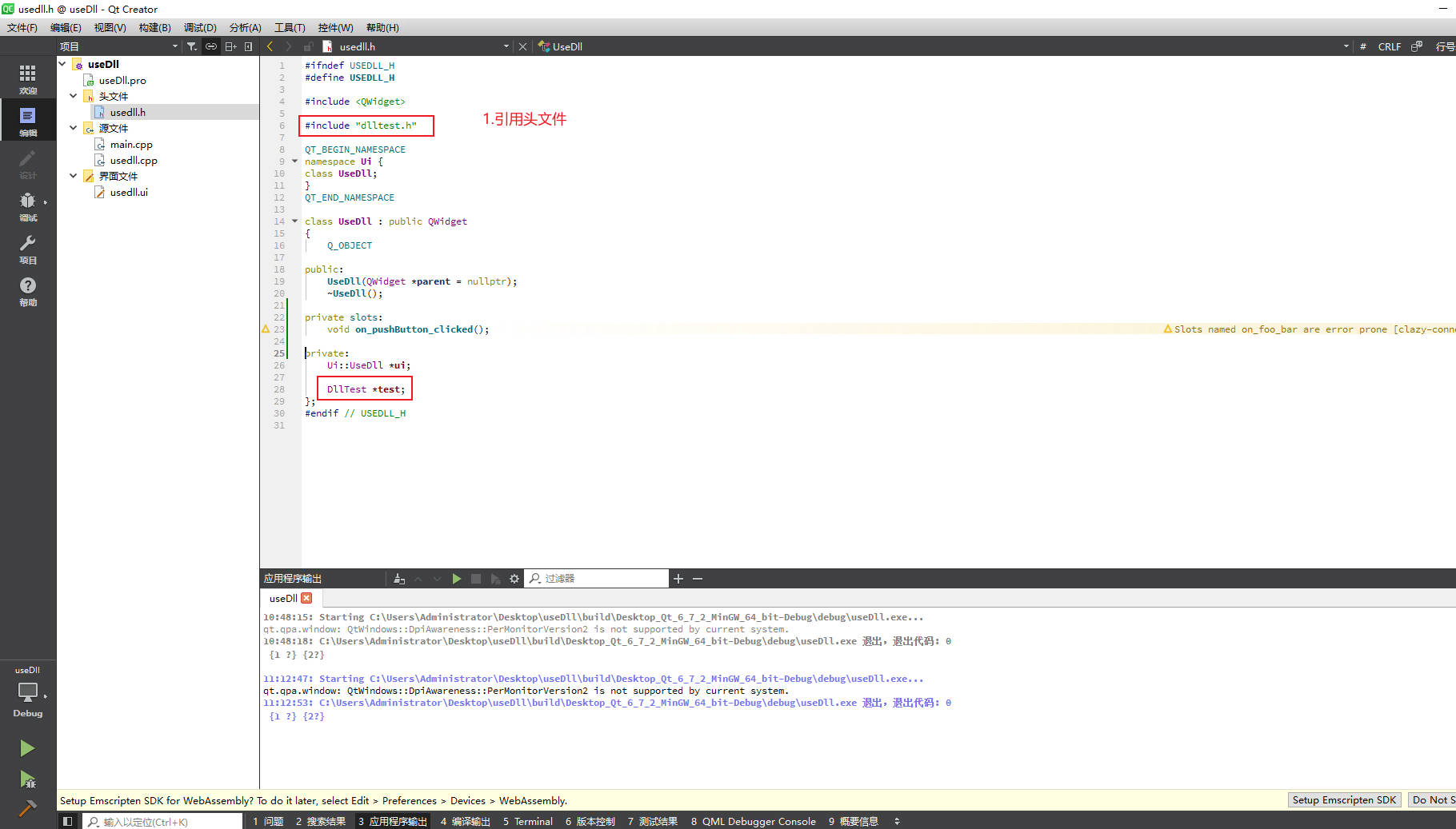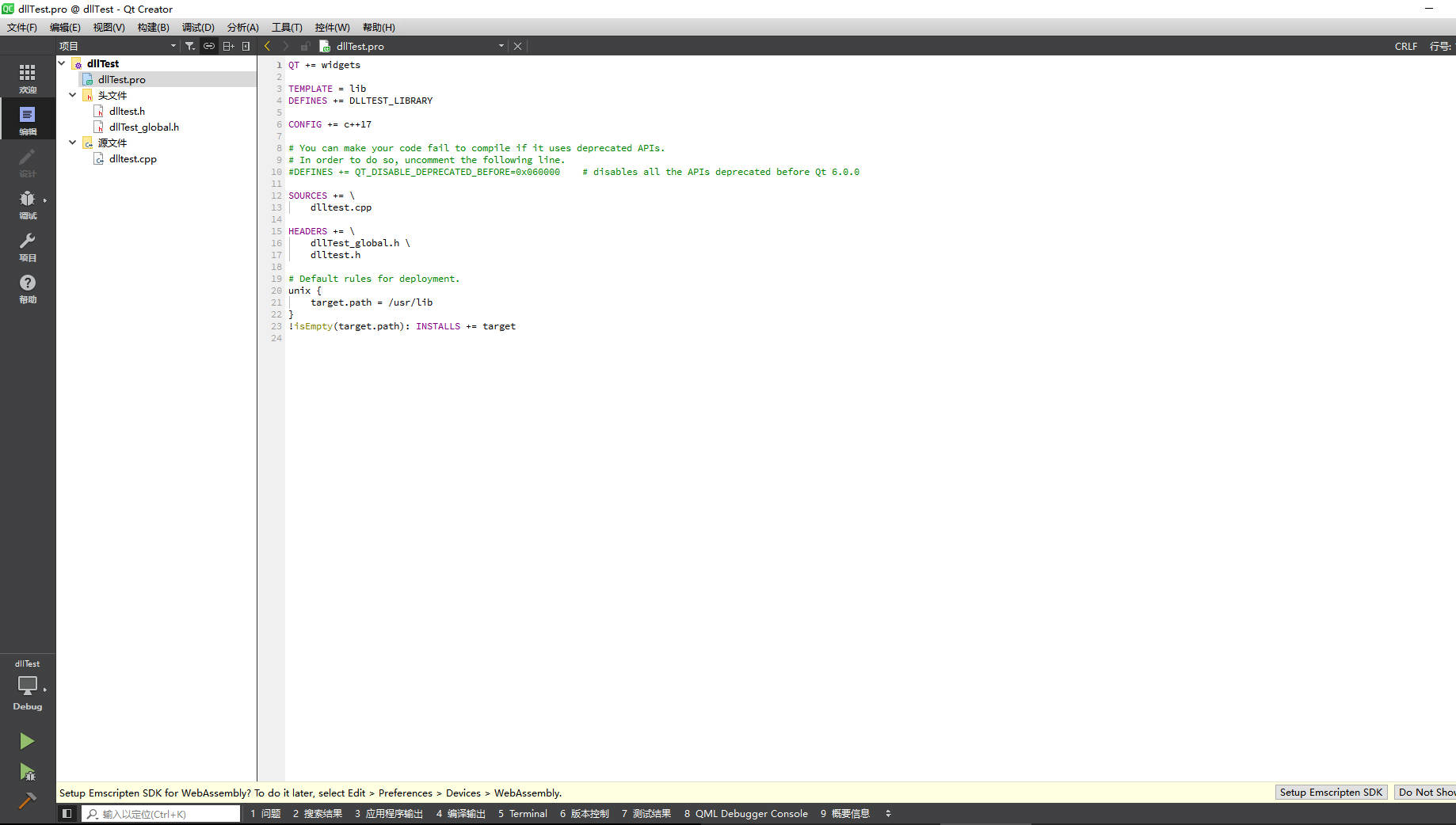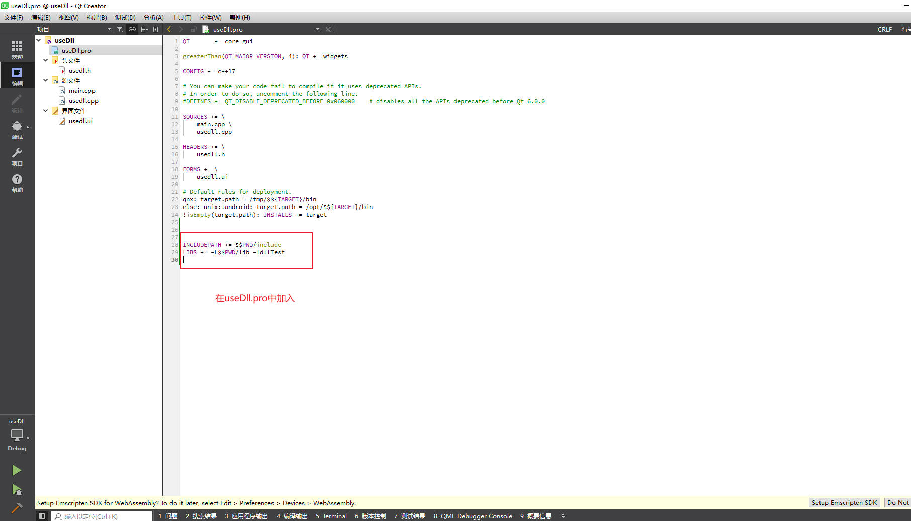 将创建的dllTest.dll复制到lib里,将dlltest.h、dllTest_global.h复制到include