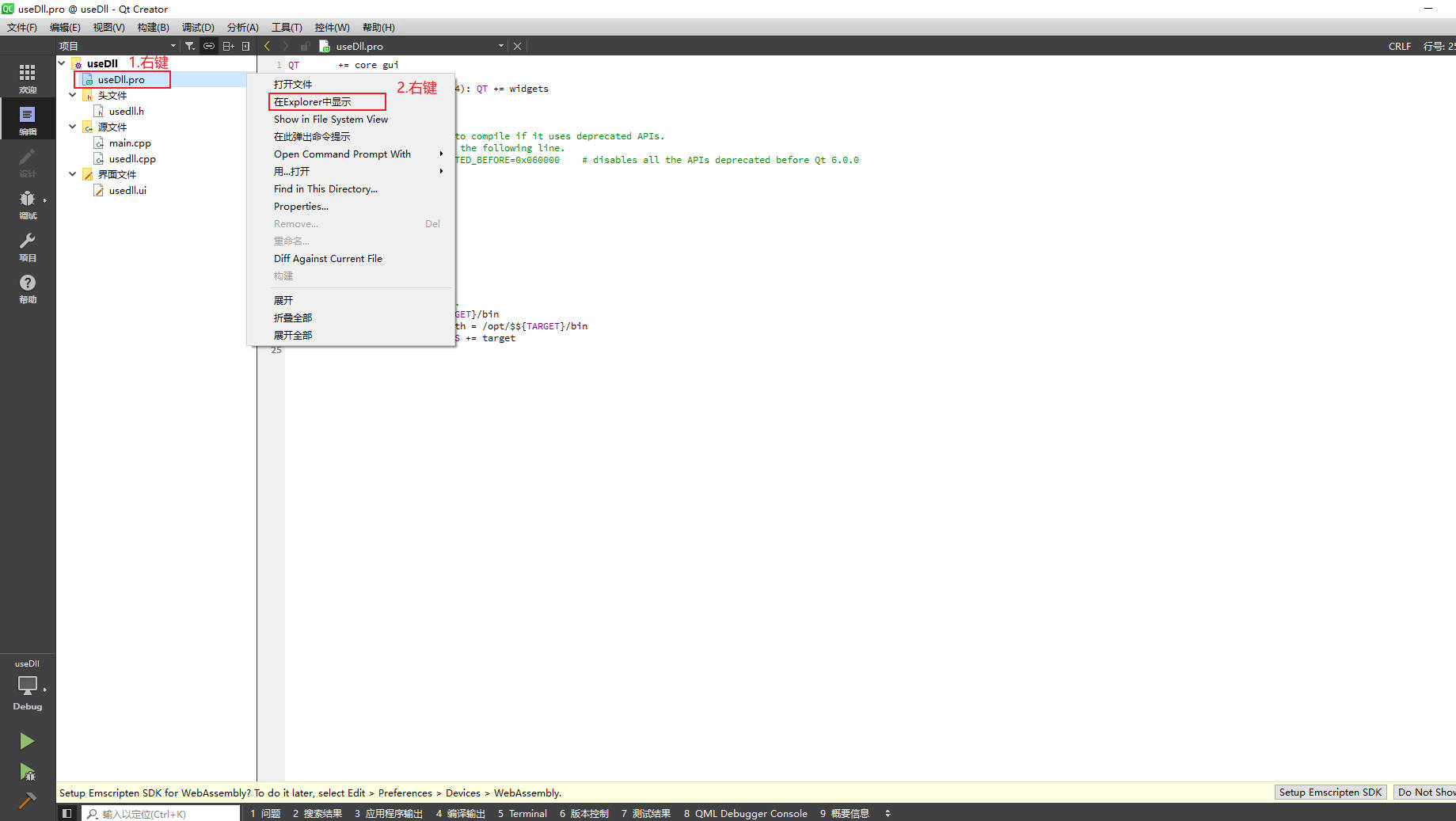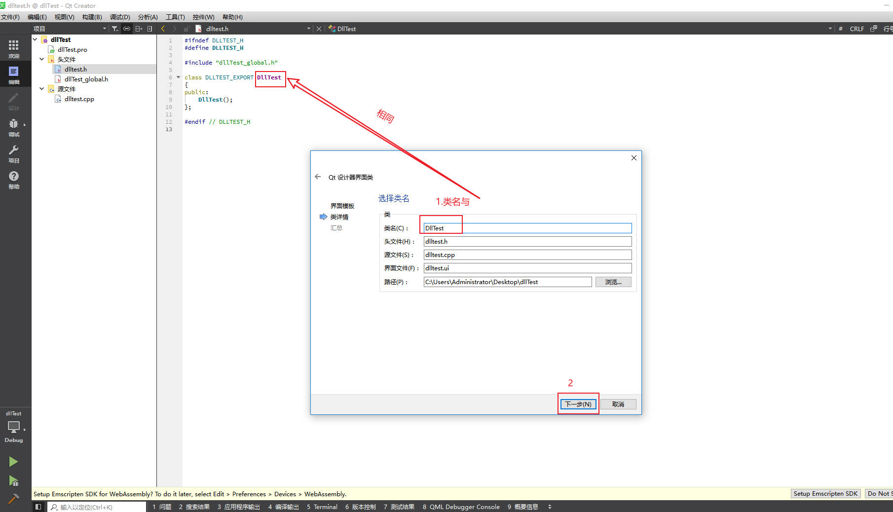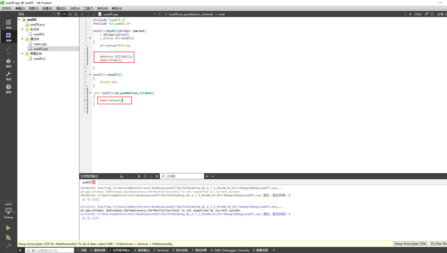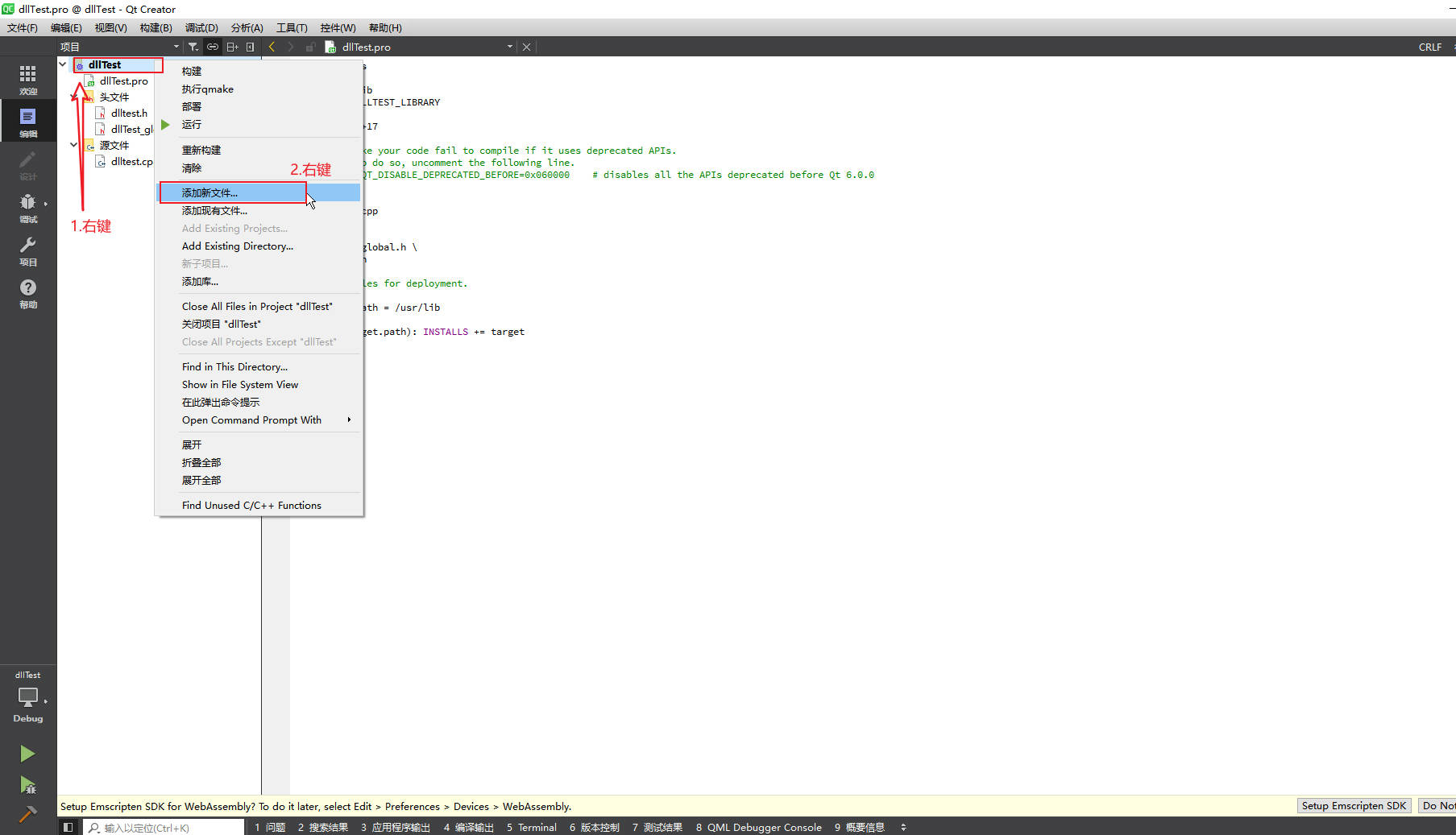 将创建的dllTest.dll复制到lib里,将dlltest.h、dllTest_global.h复制到include