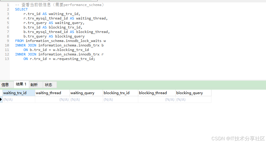 -- 查看当前锁信息(需要performance_schema)