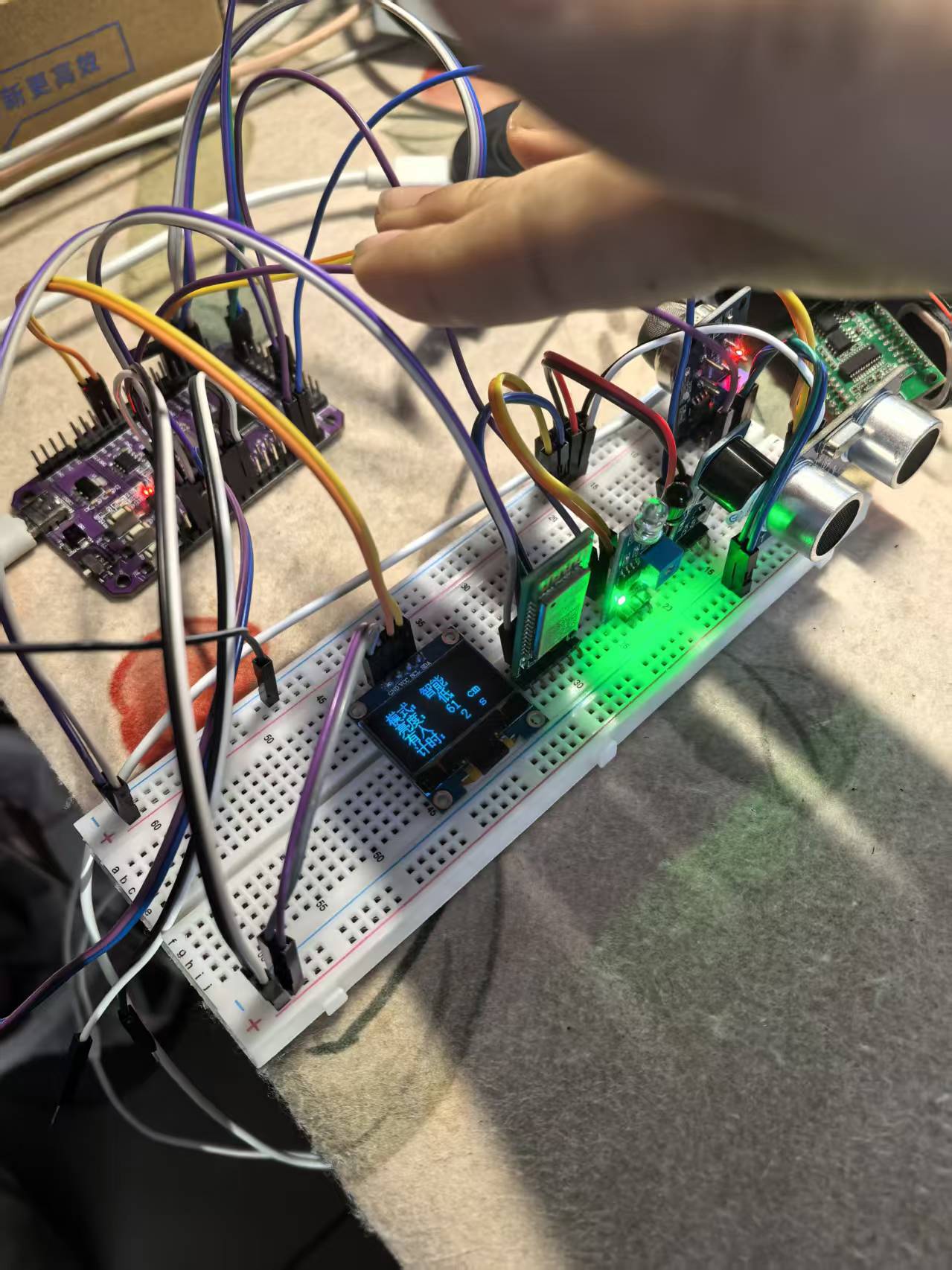 - 红外传感器检测是否有人,有人的话实时检测距离,过近则报警;同时计时,超过固定时间则警;