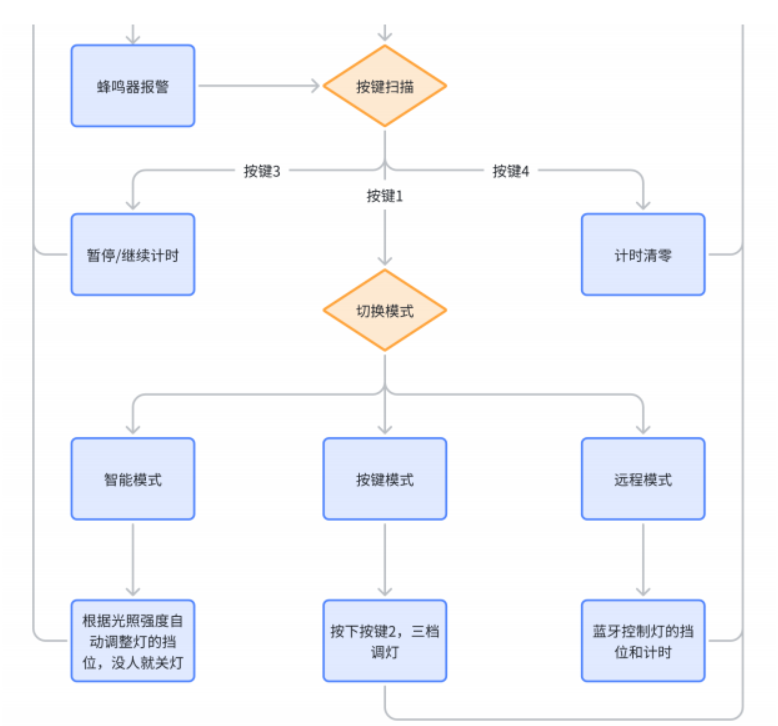 - 远程模式下,可以通过蓝牙控制光照档位、计时等;