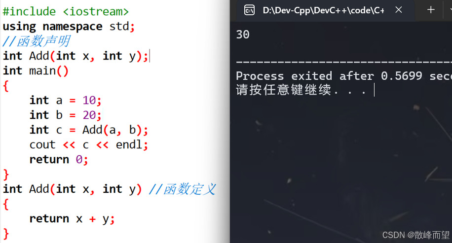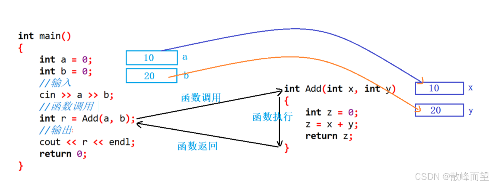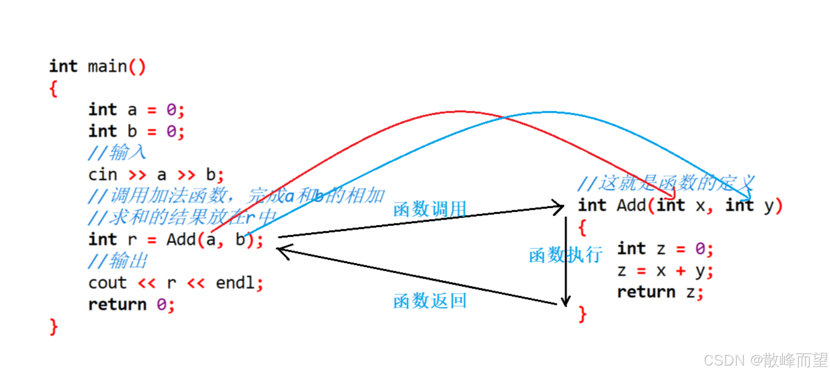 比如:我们现在要写一个函数,求两个整数的和,那么我们可以这么写: