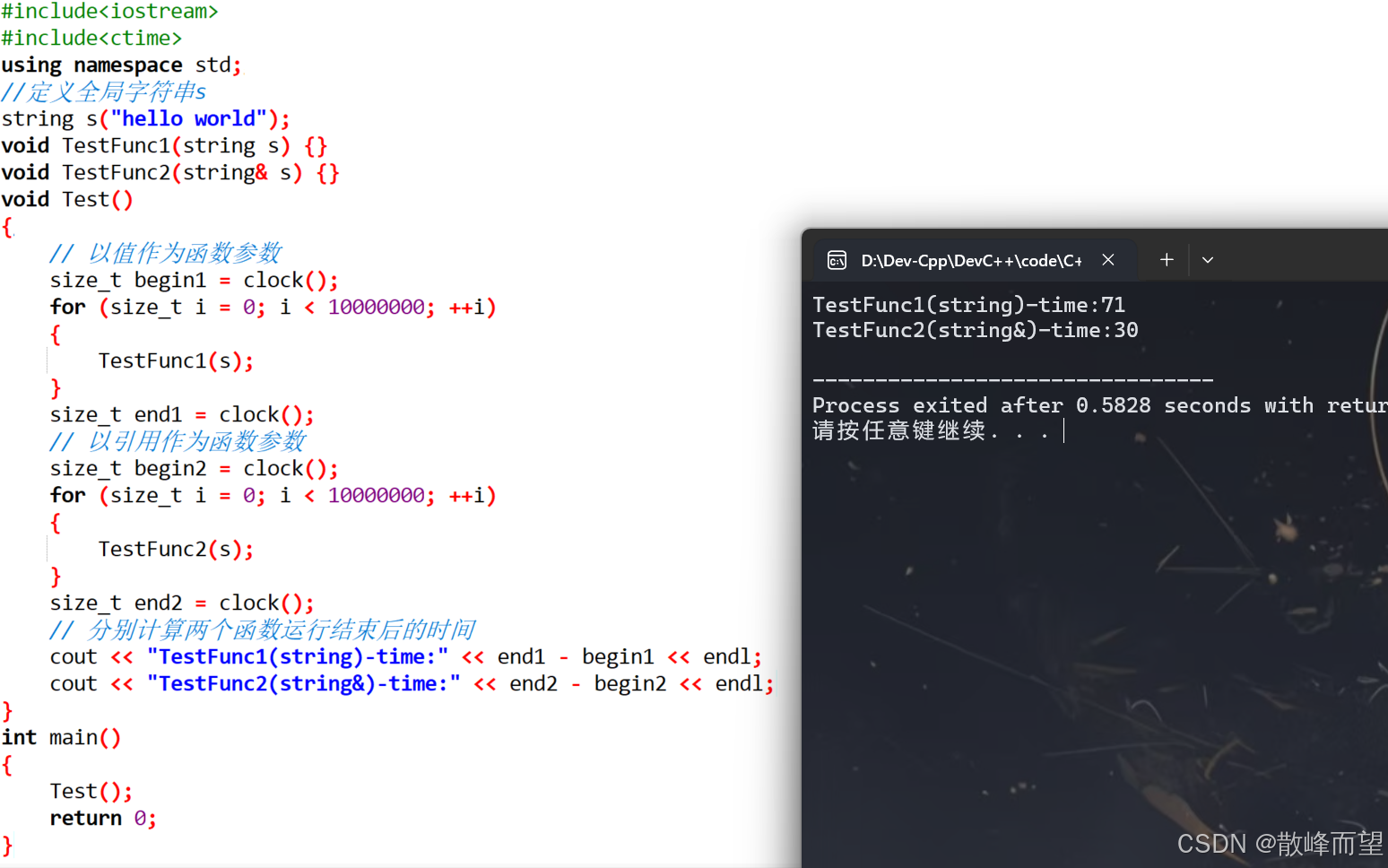 cout << "TestFunc2(string&)-time:" << end2 - begin2 << endl;