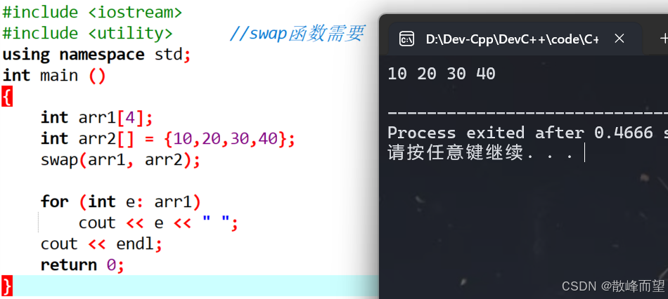 其实在 C++ 的 STL 中也提供了一个库函数 swap,这个函数可以用来交换两个变量,也可以交换两个数组(容器的值),如果掌握了,我们就不需要自己再自己实现交换的逻辑,直接使用现成的函数。
