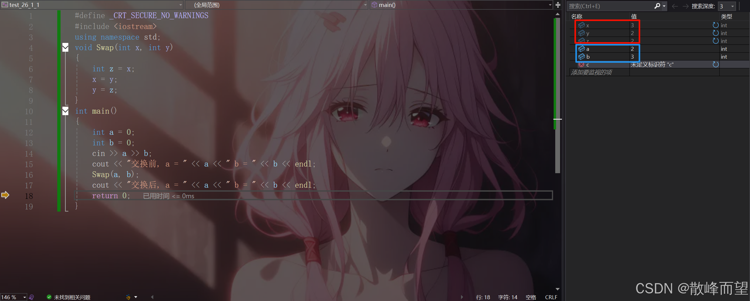 有了前面引用的学习,那就可以利用引用来重新改造前面写的 Swap 函数了。