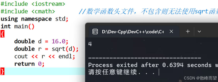 - x 是函数的参数,表示调用 sqrt 函数需要传递一个 double 类型的值