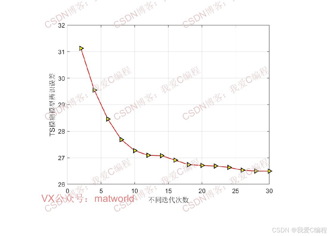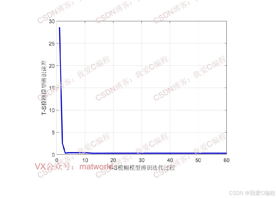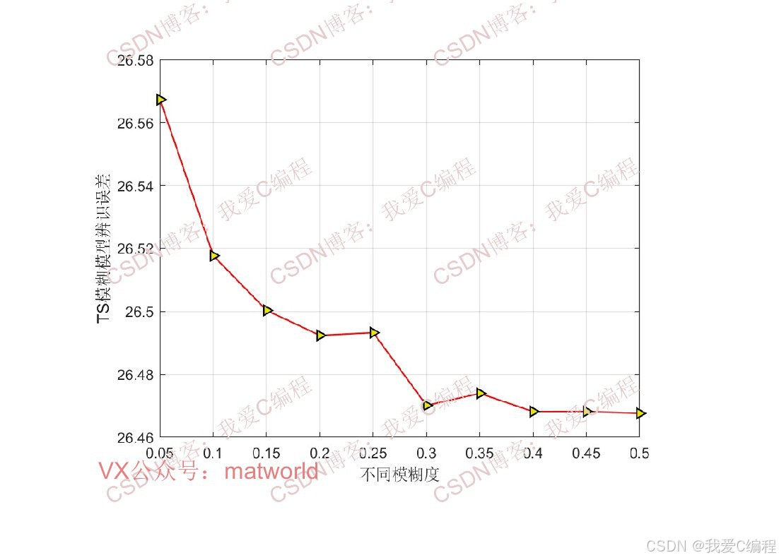 T-S模糊模型的参数辨识是指根据系统的输入以及系统的输出来确定模型的参数,包括前件结构、前件参数以及后件参数等。使得所建立的模型输出和实际的系统输出之间的误差达到最小值等。其中,T-S模糊模型的前件参数辨识主要对模糊隶属函数的参数进行辨识,使得辨识模型的输出和实际的输出误差达到最小,常见的参数辨识方法包括FCM聚类算法。后件结构辨识主要功能是确定每条规则所对应的系数,一般采用最小二乘法进行辨识,其计算量较大。