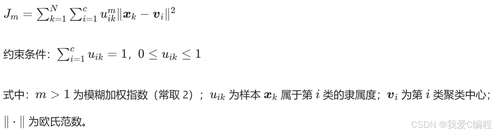 **前件参数辨识:**采用FCM(模糊C均值)聚类算法,对输入样本空间进行软划分,确定模糊规则前件的隶属度函数参数(隶属度矩阵、聚类中心),实现输入变量的模糊分类,对应模型的模糊推理部分。