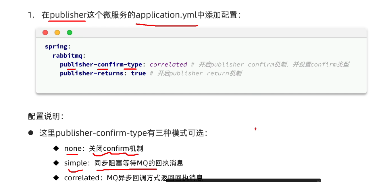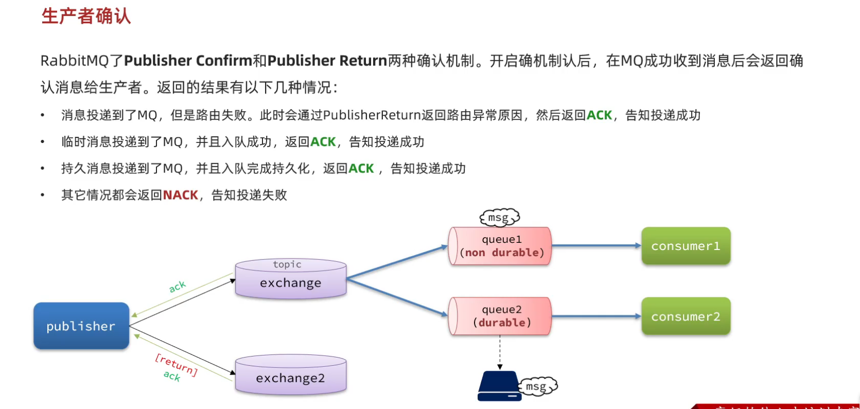 1.当消息发送到了MQ的交换机,但是没有到达队列,此时会通过PublisherReturn返回异常原因+ACK,通知消息发送成功