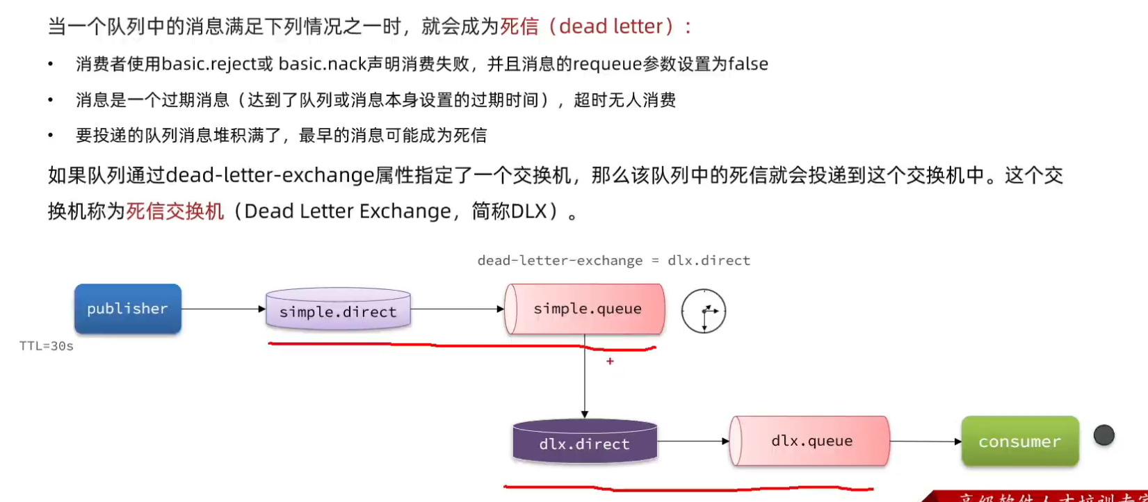 1.首先在 Spring Boot 项目中配置交换机、队列,并绑定死信交换机(DLX)