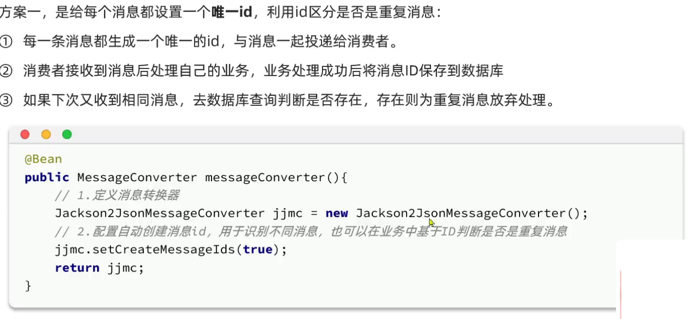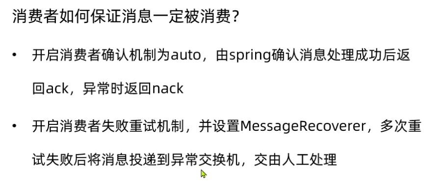- 对于 nack 消息可以有限次数重试,依然失败则记录异常消息