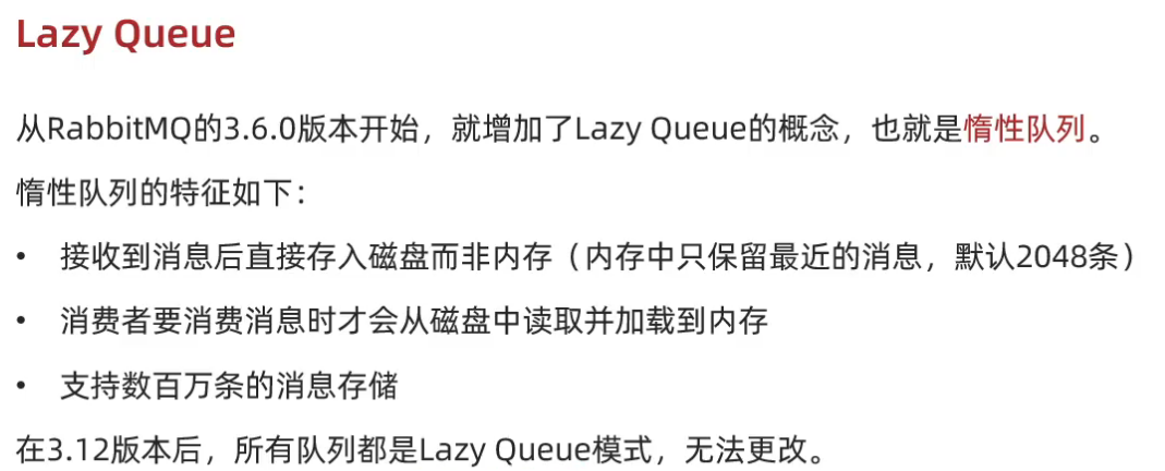 - 内存空间有限,当消费者故障或处理过慢时,会导致消息积压,引发 MQ 阻塞(慢)