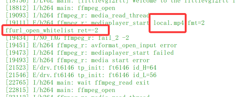 这里可以看到local.mp4是TF卡中没有的视频名称,所以自然也是打开失败,ret返回的值为-2(这里ret等于0说明成功获取到视频了,ret小于0就是失败了)