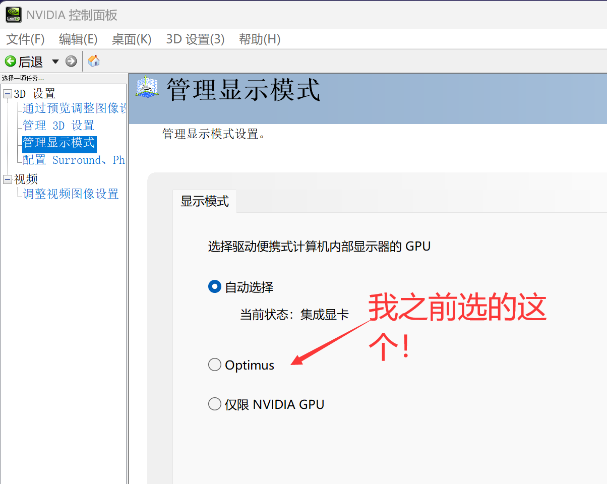我以前有时候打游戏的时候莫名其妙用的是集成显卡,我就改过一次配置,