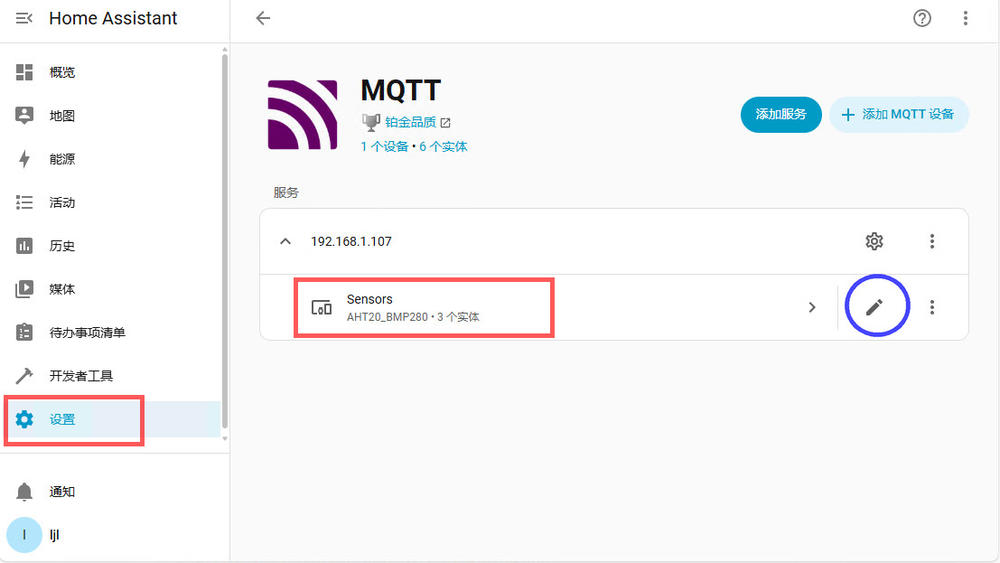 打开 Home Assistant 网页界面 http://192.168.31.118:8123 ,在 设置 - 设备与服务 标签页添加 MQTT 集成;