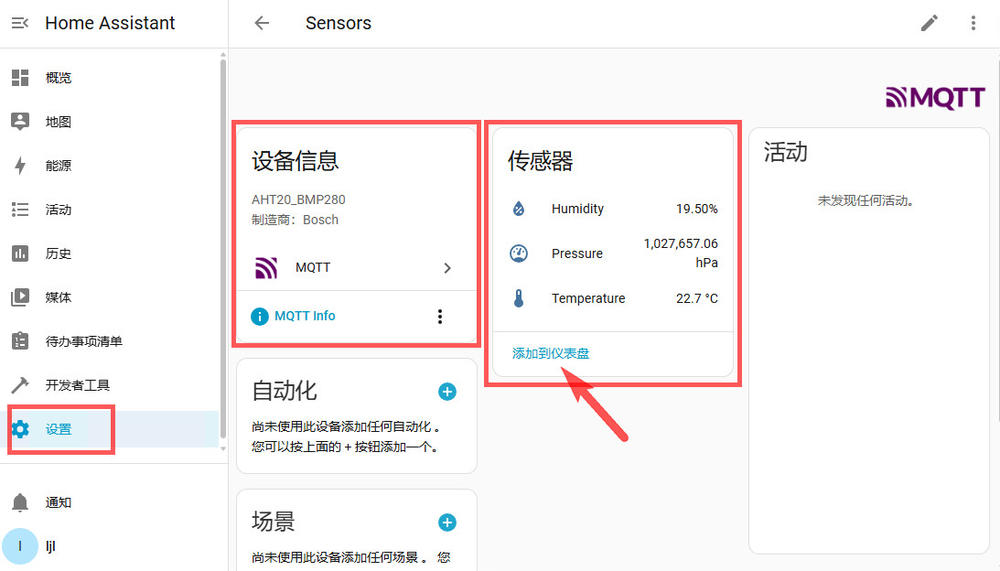 - Home Assistant:通过 MQTT 集成,实现传感器数据卡片自动获取,实现物联网环境气体监测。