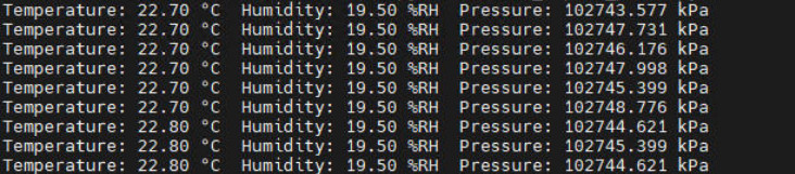 print(f"Temp: {temp:.2f} °C Hum: {hum:.2f} % Pres: {pressure_hpa:.2f} hPa")