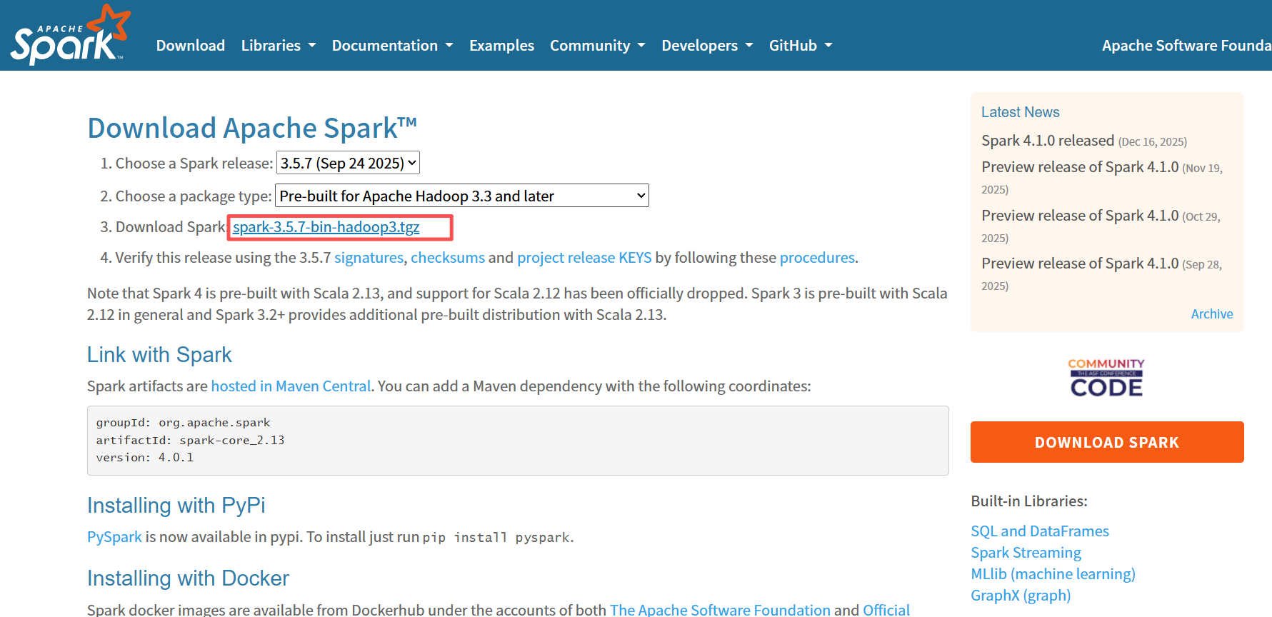 wget https://dlcdn.apache.org/spark/spark-3.5.7/spark-3.5.7-bin-hadoop3.tgz