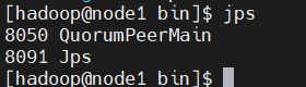 可以使用命令jps验证进程是否已经启动,出现 QuorumPeerMain 则代表启动成功。