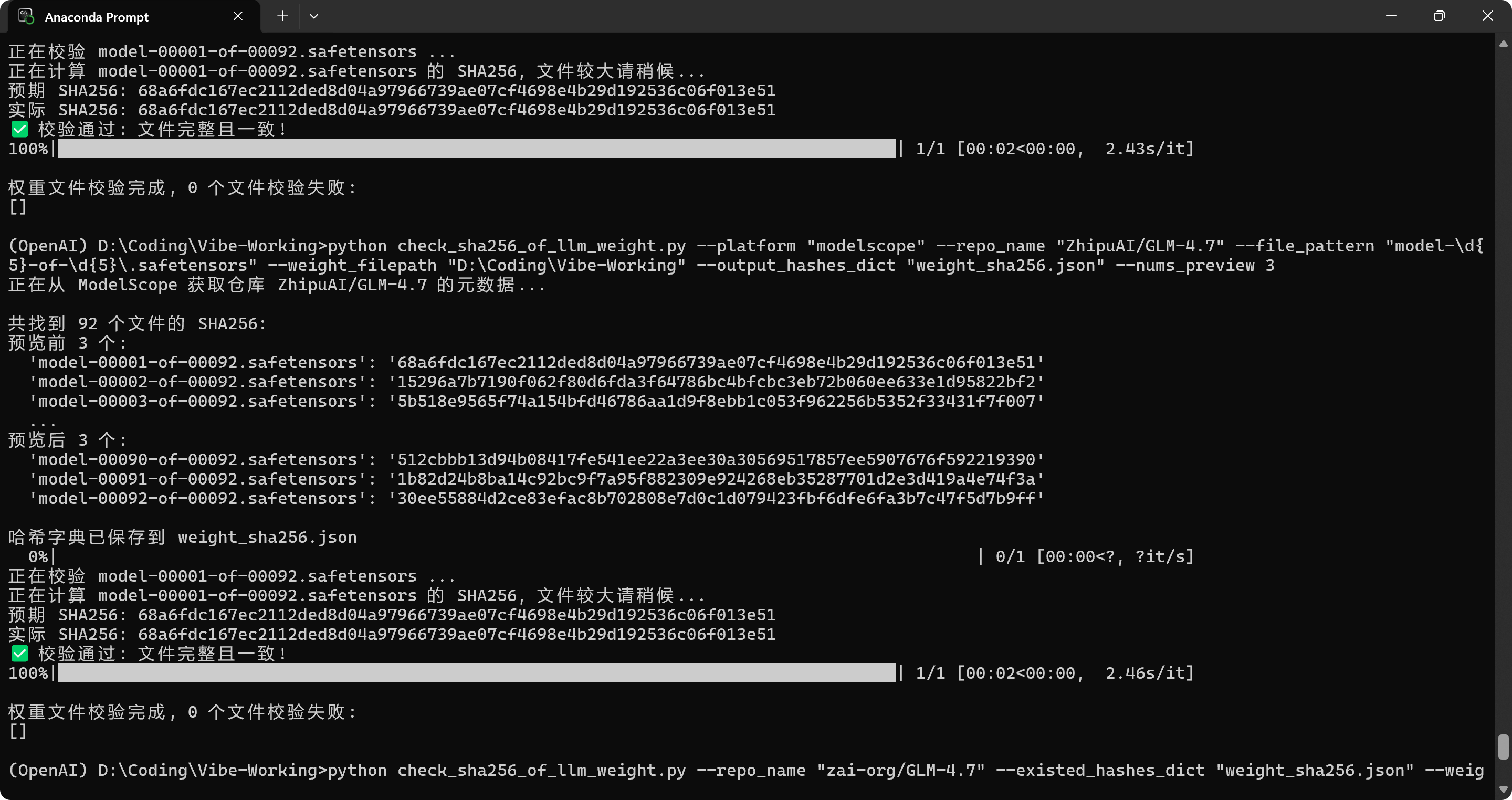 python check_sha256_of_llm_weight.py --repo_name "zai-org/GLM-4.7" --existed_hashes_dict "weight_sha256.json" --weight_filepath "D:\Coding\Vibe-Working"