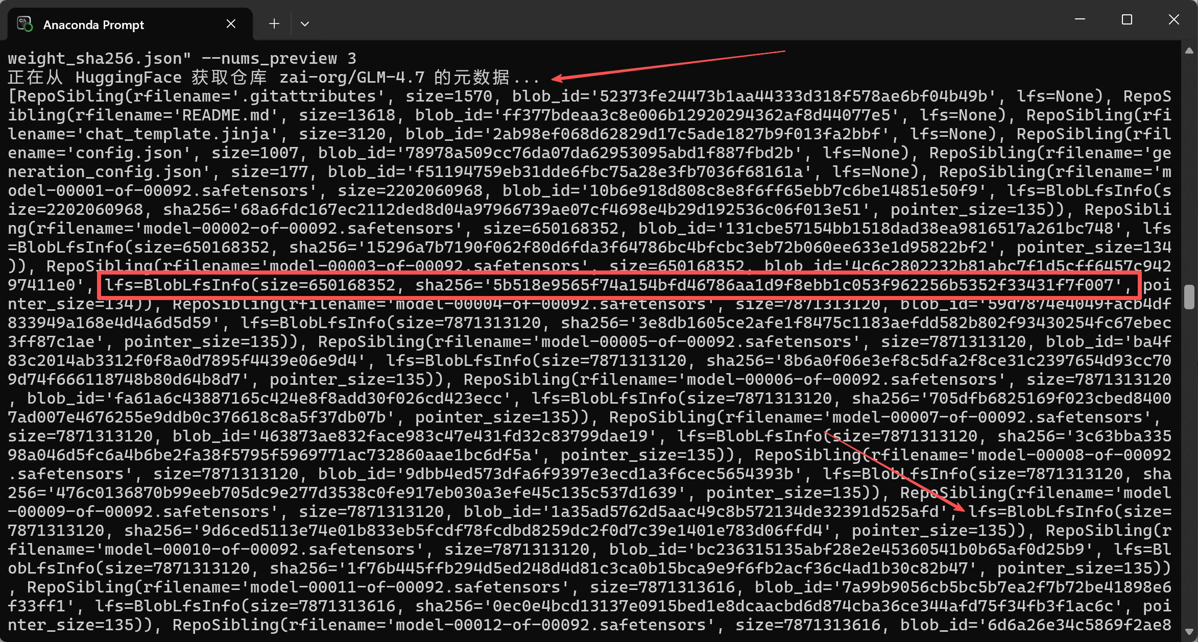 python check_sha256_of_llm_weight.py --platform "huggingface" --repo_name "zai-org/GLM-4.7" --file_pattern "model-\d{5}-of-\d{5}\.safetensors" --weight_filepath "D:\Coding\Vibe-Working" --output_hashes_dict "weight_sha256.json" --nums_preview 3