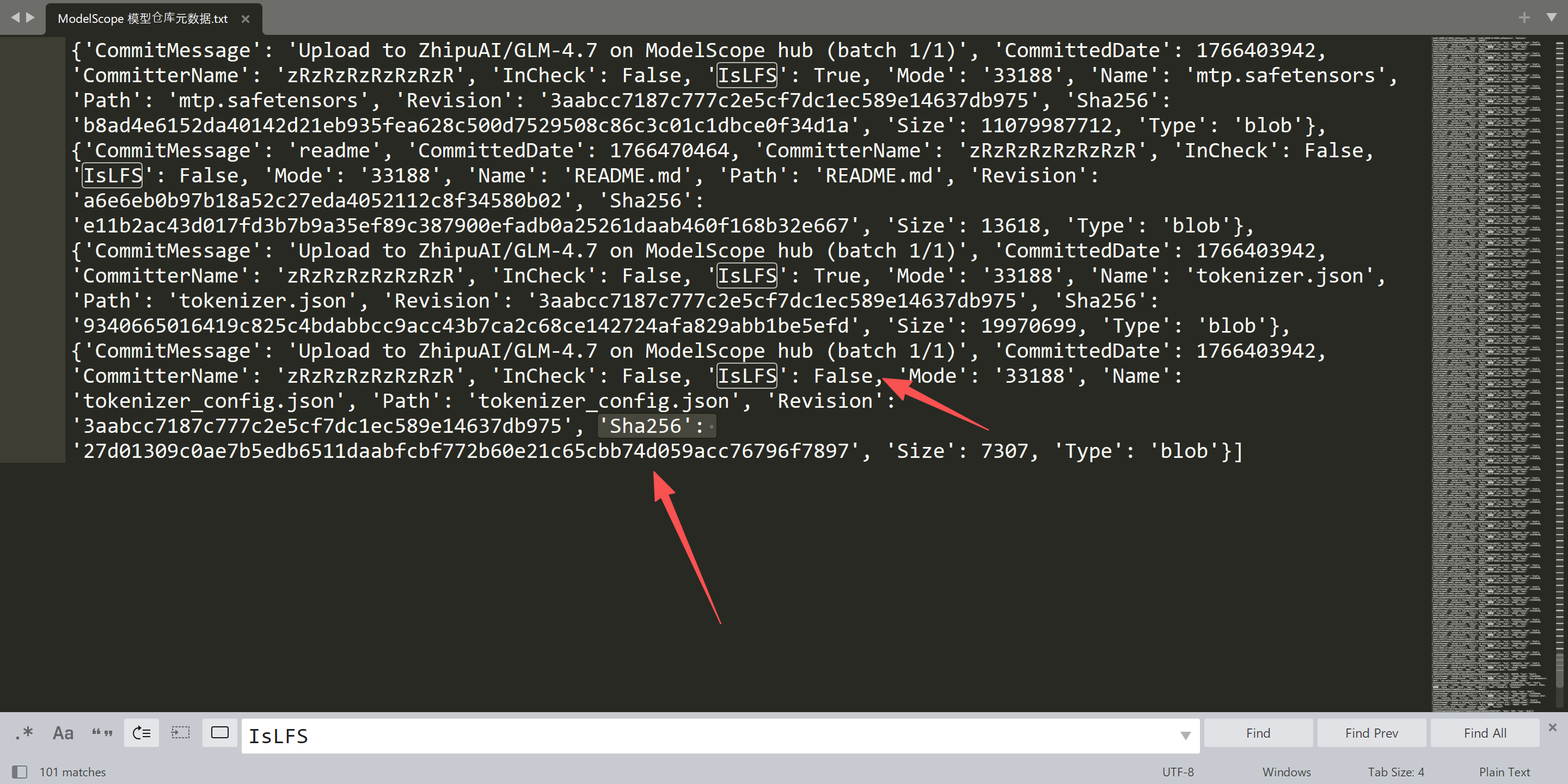 # 非 LFS 文件不提供 SHA256, blob_id 是 Git SHA1