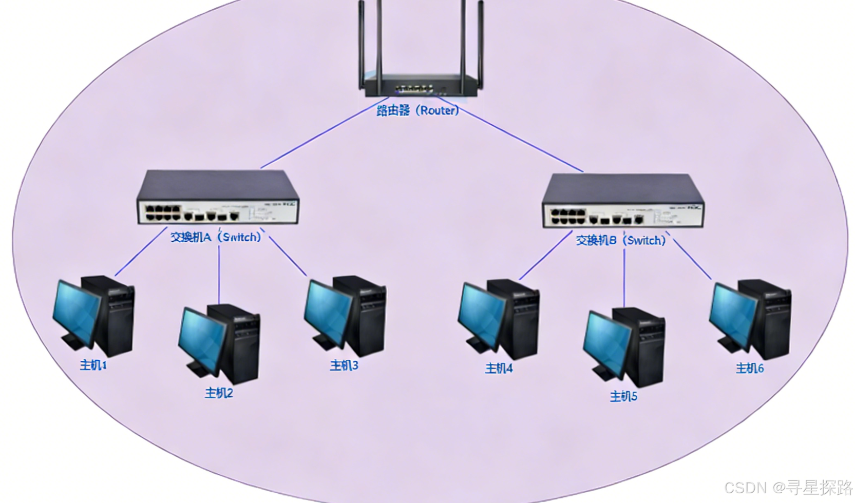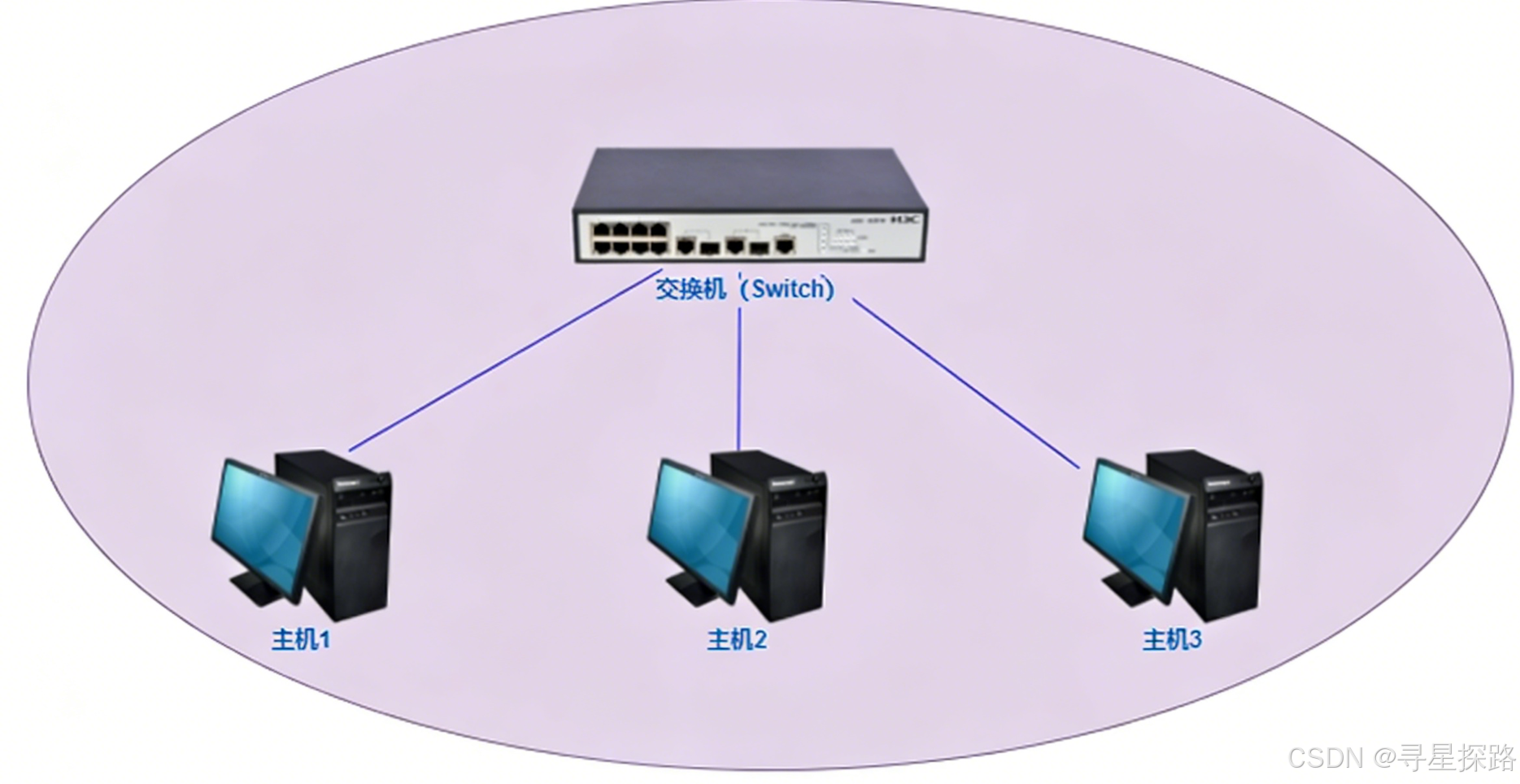 3. **基于交换机 (Switch) 组建**:交换机是二层设备,能学习 MAC 地址并建立地址表。它能实现定向转发,让数据"指名道姓"地投递,互不干扰。
