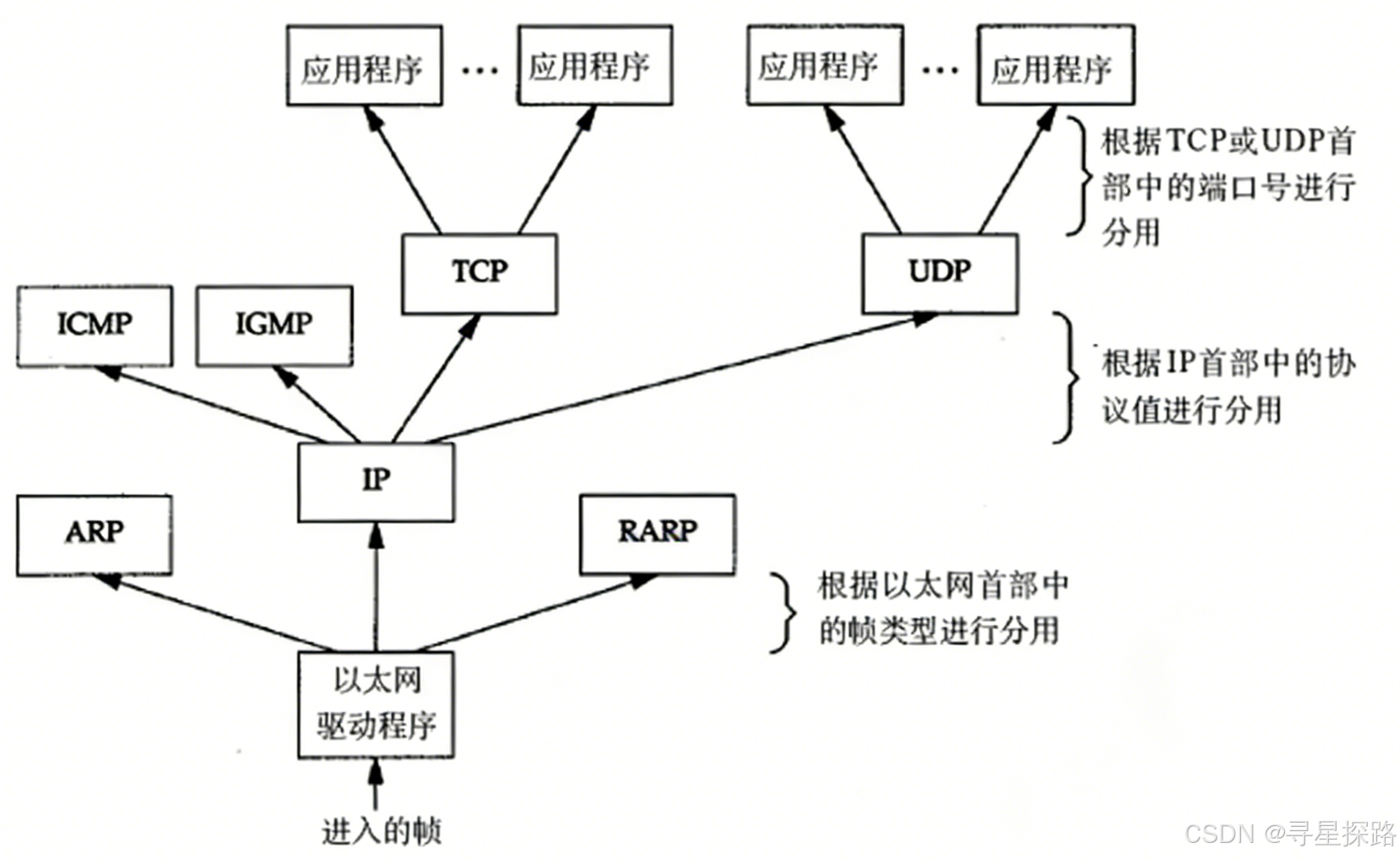 - 传输层:根据端口号,将载荷推送到对应的进程(Socket)。