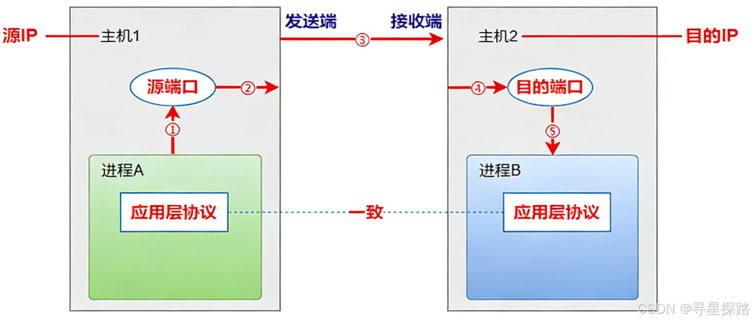 作用 :IP 地址只能带你找到对应的主机,但主机上可能同时运行着微信、QQ、浏览器等多个程序。端口号则负责标识具体的通信进程 。