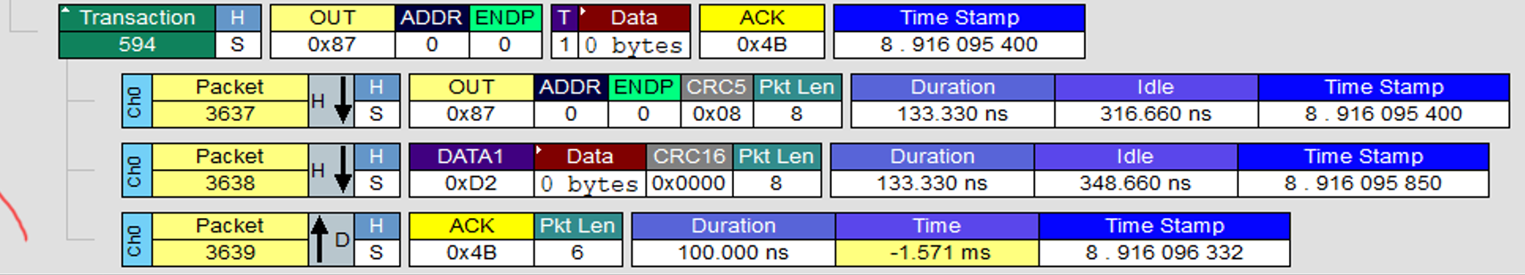 状态阶段:OUT事务(主机发送0长度包,设备回应状态)