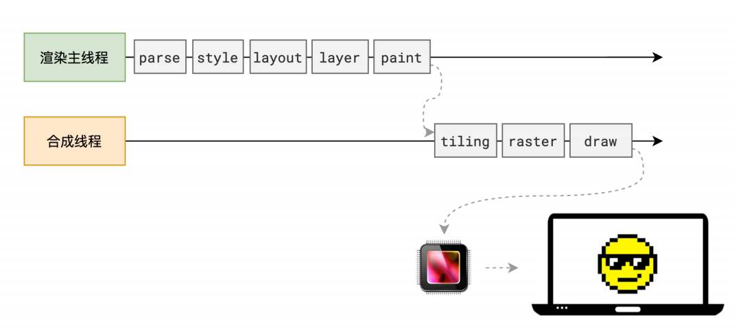 合成线程会将块信息交给 GPU 进程,以极高的速度完成光栅化。