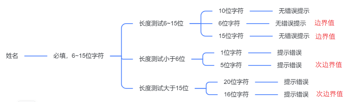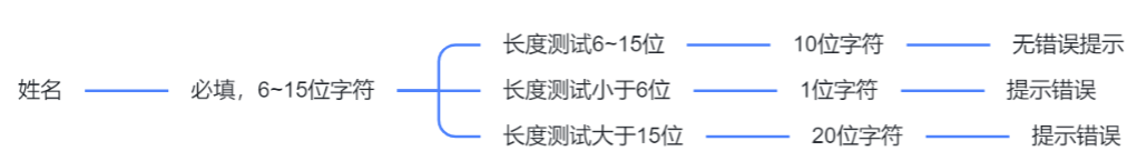 以 "邮箱注册" 的 "姓名" 字段为例(需求:必填,6~15 位字符),可提炼出以下测试点: