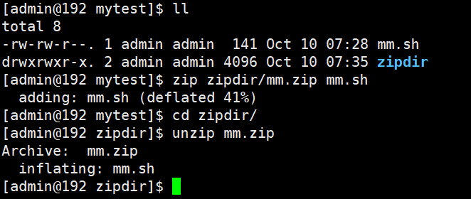 - 压缩成功→提示 "adding: 文件名 (deflated xx%)",文案清晰;